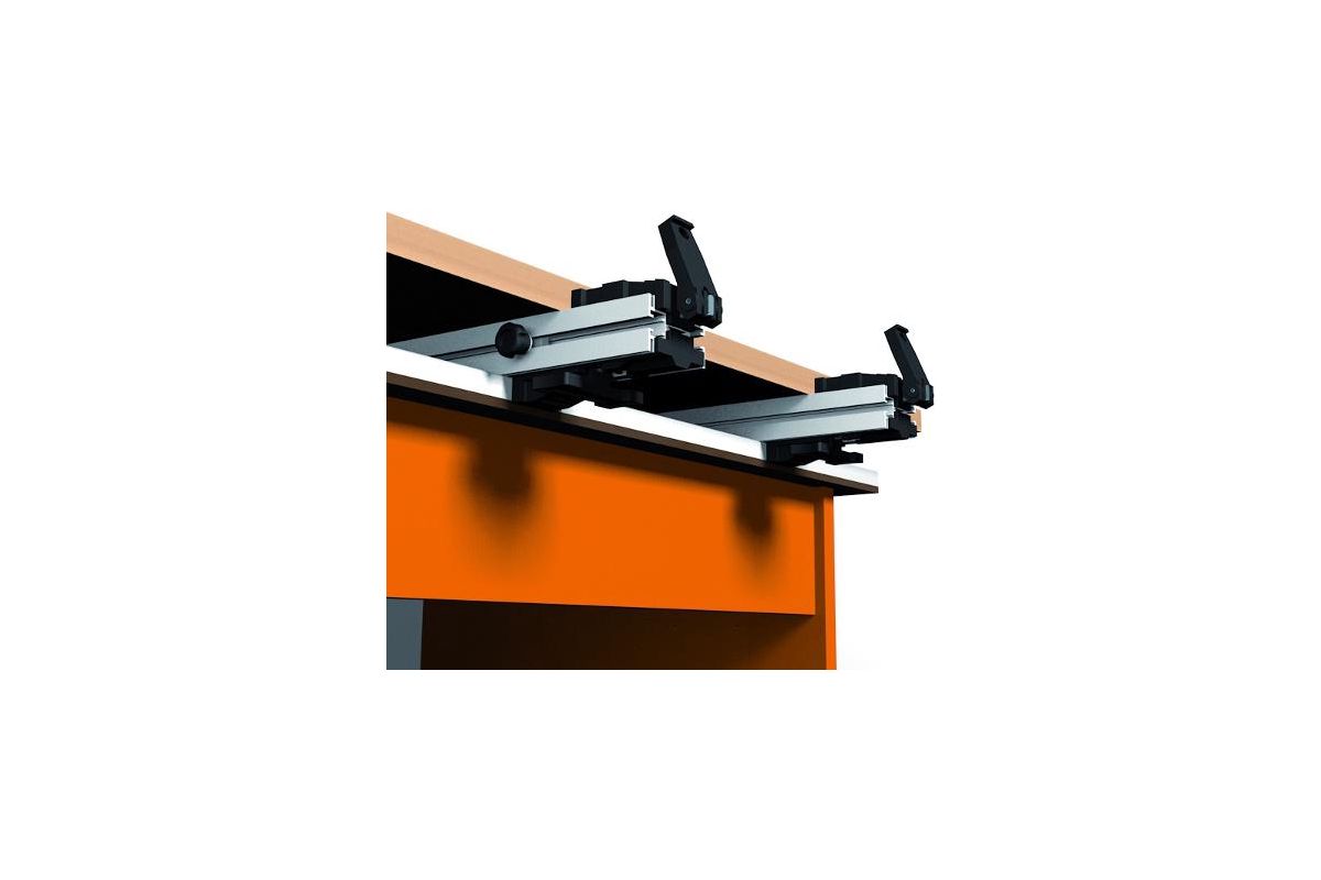 Тиски торцевые предназначены для зажима деревянной заготовки в виде листа шириной до 915 мм. Выполняет функцию параллельного упора при резке изделий с помощью циркулярной пилы, обработке на фрезерном столе и т.д. Тиски соединяются с помощью коннекторов CM