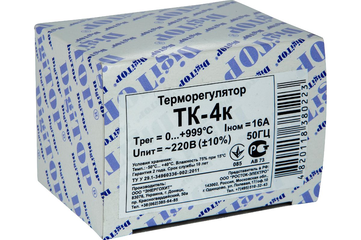 Одноканальный электронный регулятор температуры ТК-4к (под термопару ТХА) предназначен для поддержания заданной пользователем температуры объекта в режиме нагрева или охлаждения с отображением значений температуры на встроенном цифровом светодиодном индикаторе. Терморегулятор управляется микроконтроллером, измерительным элементом служит термопара ТХА.