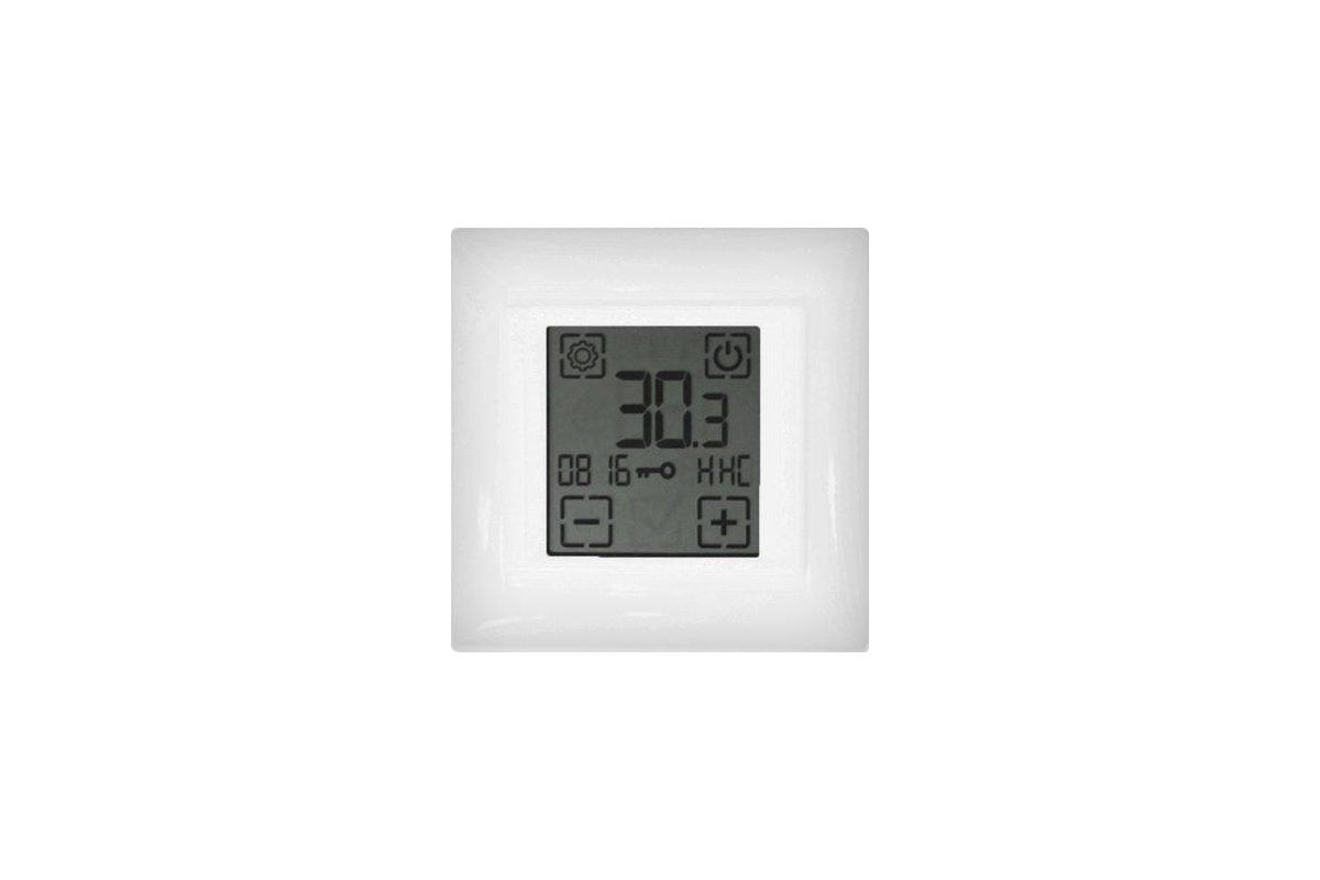 Термостат состоит из корпуса, на лицевой панели которого установлен сенсорный жидкокристаллический дисплей. ЖК дисплей служит для отображения текущего состояния системы во время работы термостата и для задания и отображения параметров режимов работы. В корпусе термостата имеются отверстия для крепления его к подрозетнику, клеммная колодка для подключения нагревательных секций (приборов), сети питания и внешнего датчика температуры. В термостат установлен электронный регулятор, обеспечивающий установку заданной температуры, автоматическое включение и отключение нагрузки.