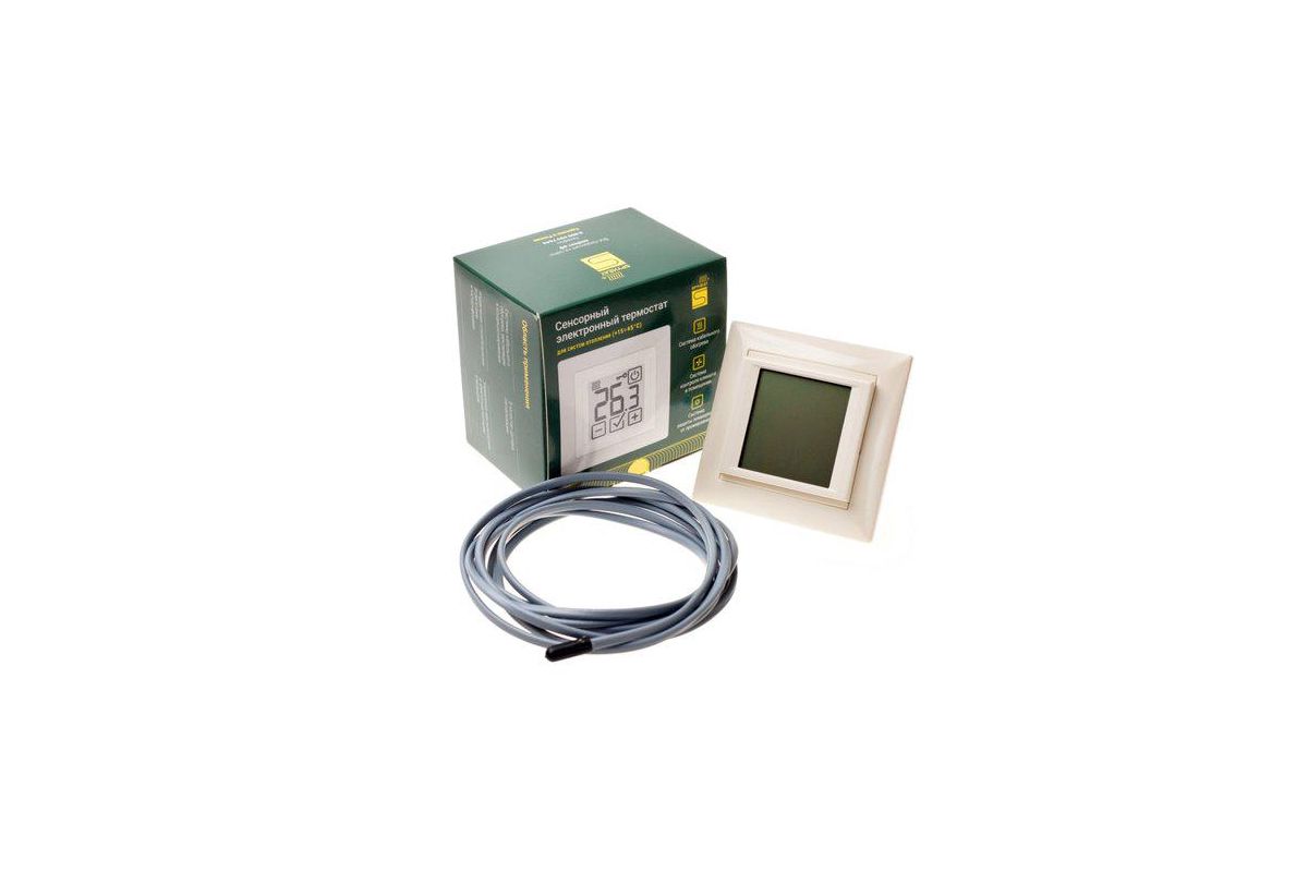 Термостат состоит из корпуса, на лицевой панели которого установлен сенсорный жидкокристаллический дисплей. ЖК дисплей служит для отображения текущего состояния системы во время работы термостата и для задания и отображения параметров режимов работы. В корпусе термостата имеются отверстия для крепления его к подрозетнику, клеммная колодка для подключения нагревательных секций (приборов), сети питания и внешнего датчика температуры. В термостат установлен электронный регулятор, обеспечивающий установку заданной температуры, автоматическое включение и отключение нагрузки.