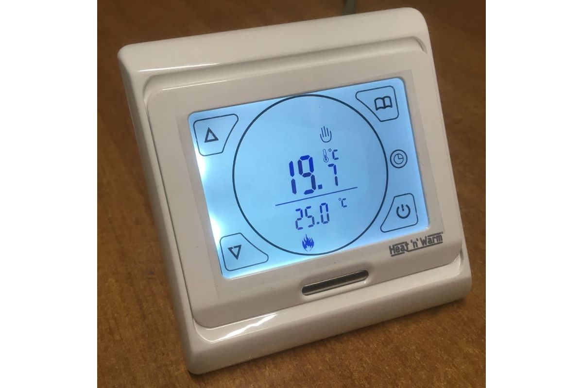 Программируемый терморегулятор c сенсорным дислпеем для управления отоплением электрического типа.