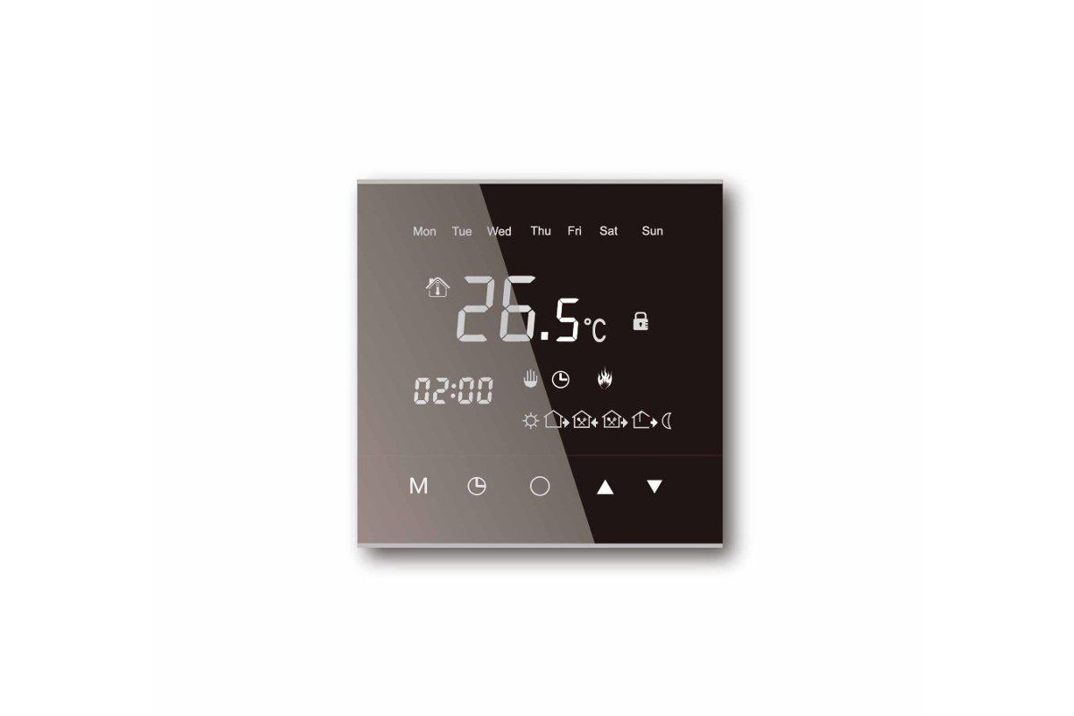 Терморегулятор электронный программируемый используется для поддержания и регулировки температуры помещения, управления температурой системы ''Теплый пол'' и обогревателей. Оснащен большим сенсорным дисплеем с подсветкой, на котором отображаются все доступные настройки.
