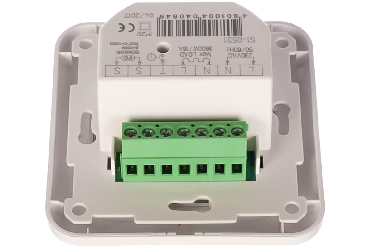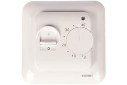 Терморегулятор механический предназначен для управления температурой электрического теплого пола в диапазоне от +5°С до +40°С. Оснащен датчиком температуры пола. Светодиодный индикатор терморегулятора светится при включенном состоянии системы нагрева. Корпус изготовлен из пластика белого цвета.