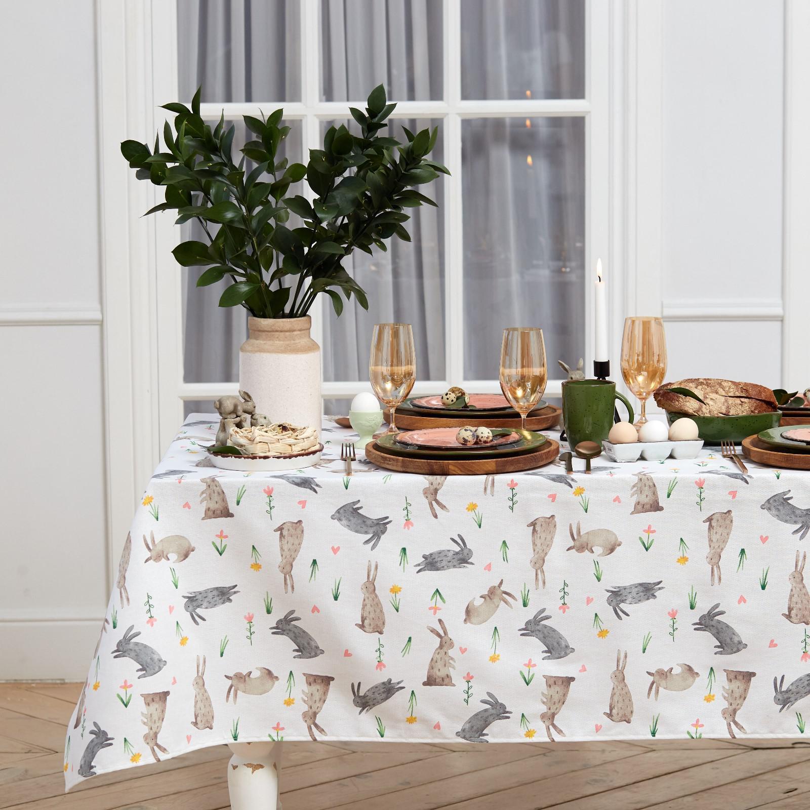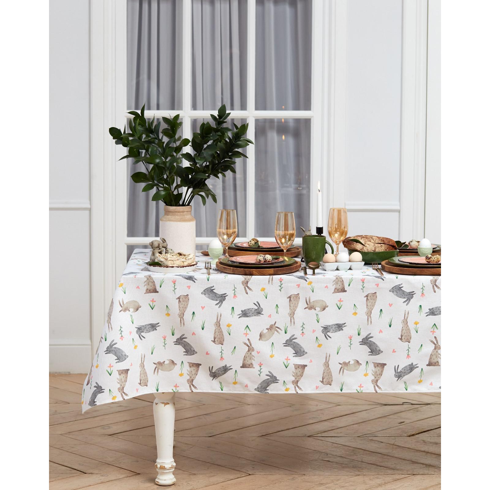 Скатерть пасхальная Доляна "Fluffy bunnies" 110х144 см, 100% хлопок, 164 г/м2