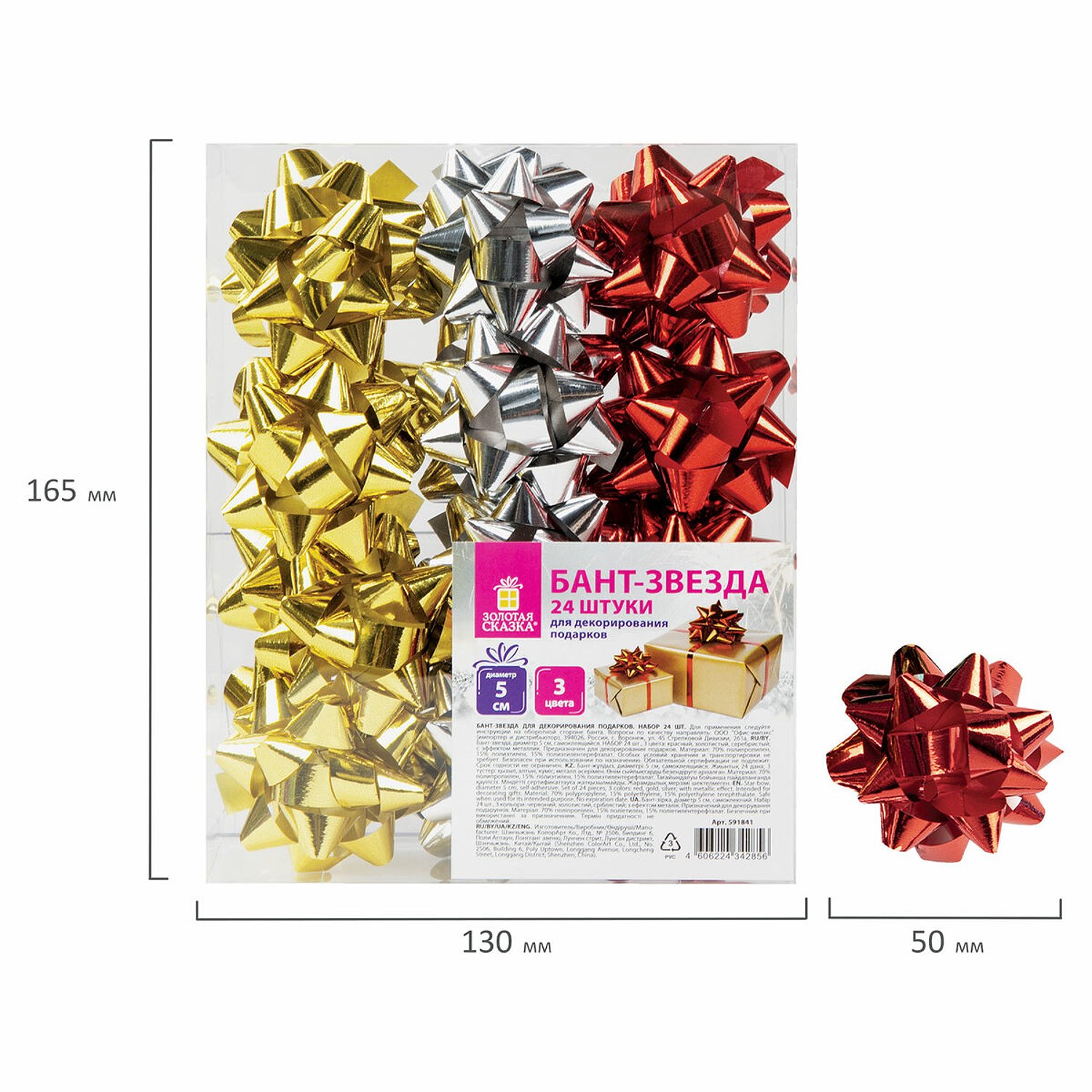 Бантик подарочный Золотая сказка упаковочный большой диаметр 5см 24 шт 591841