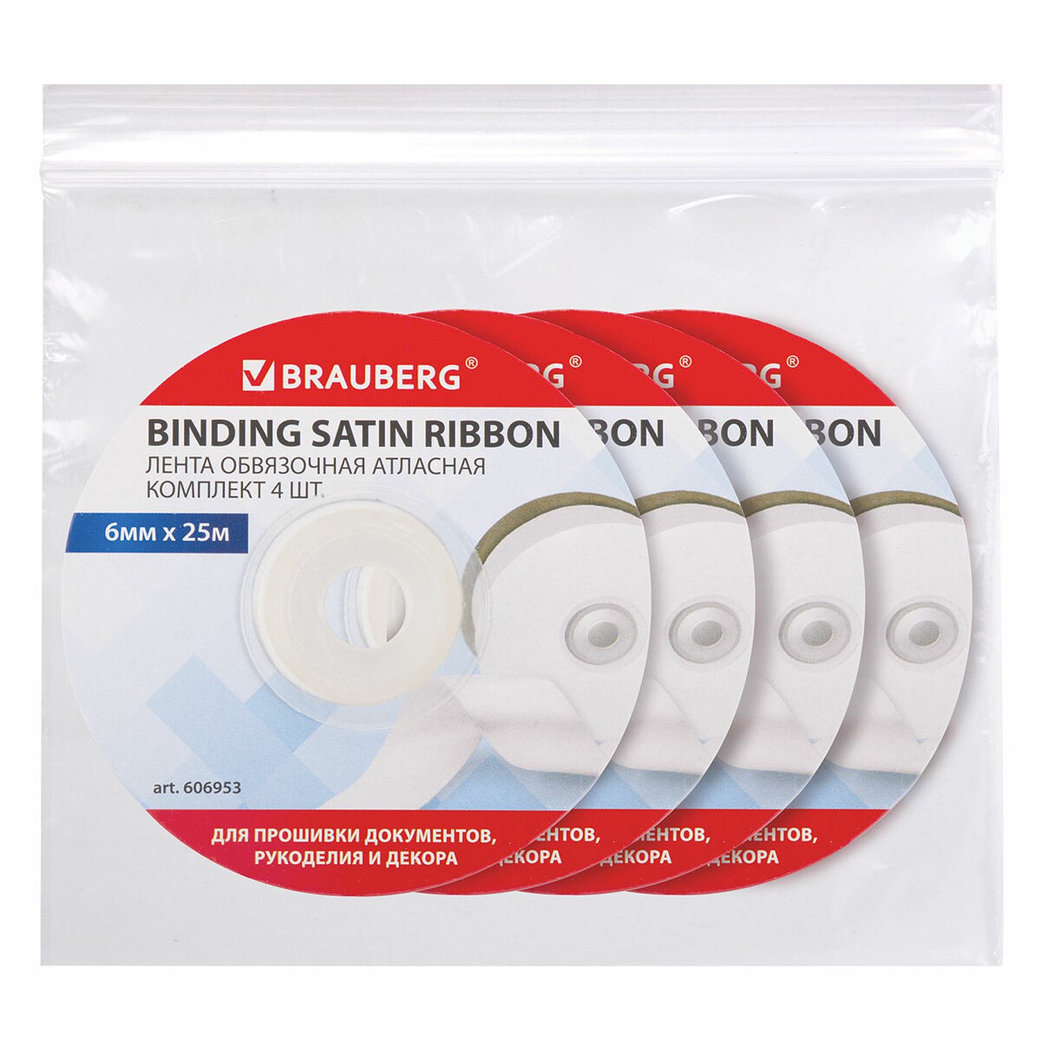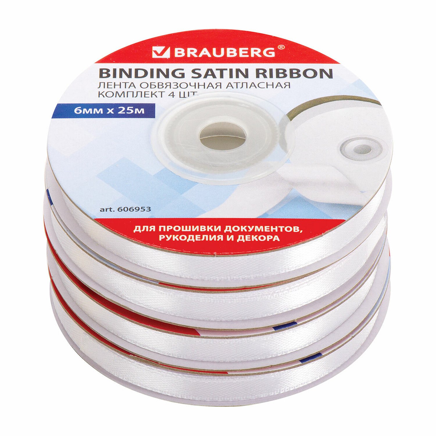 Лента атласная упаковочная Brauberg для подарков и рукоделия Белая 4 шт 606953