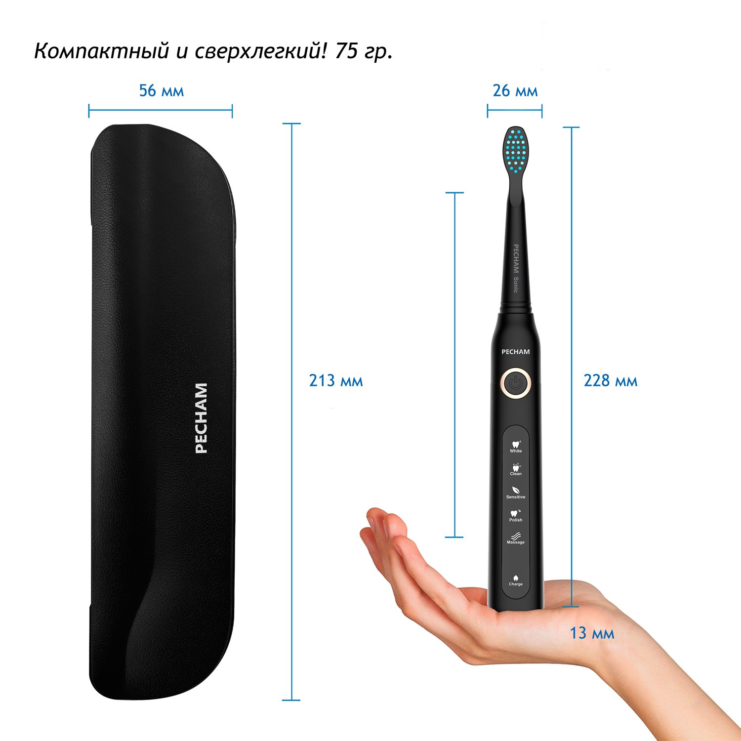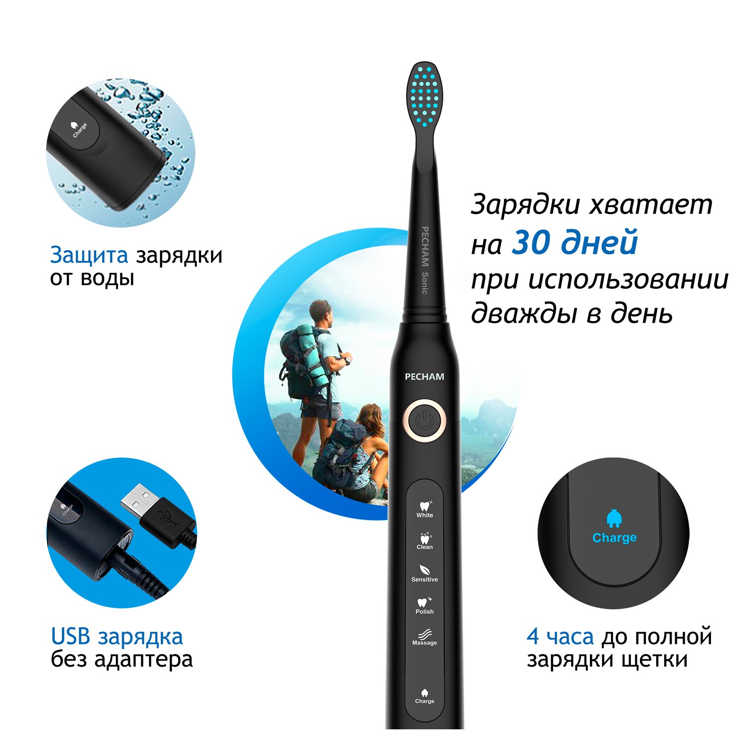 Электрическая зубная щетка PECHAM Sonic Black 080