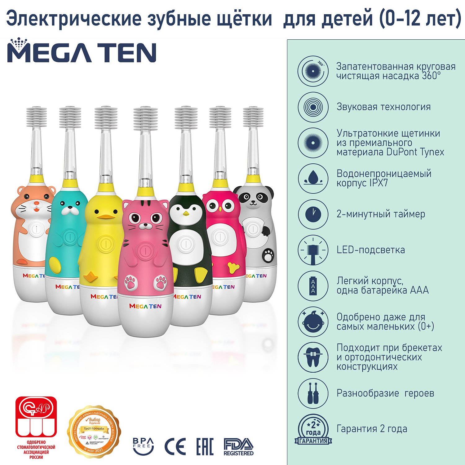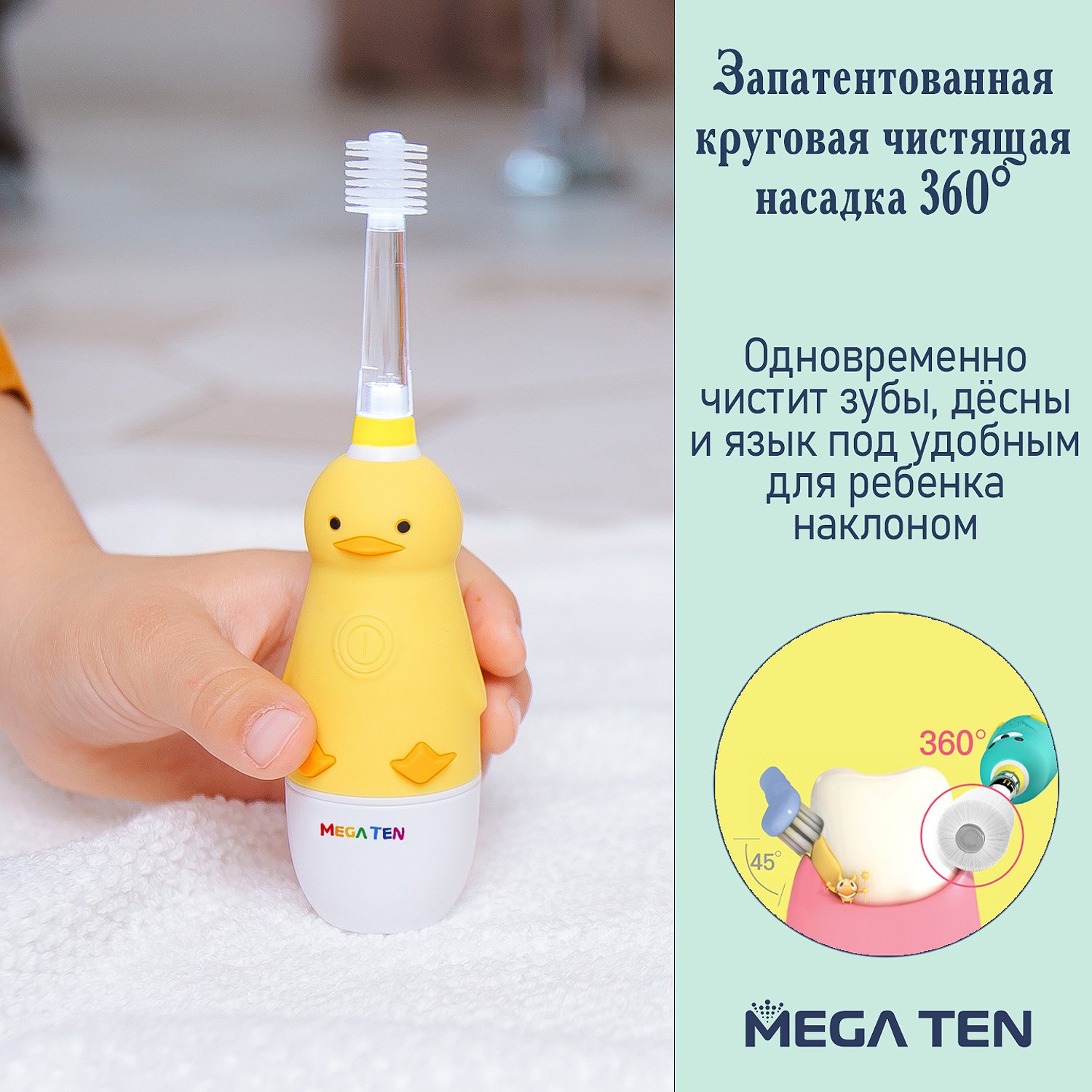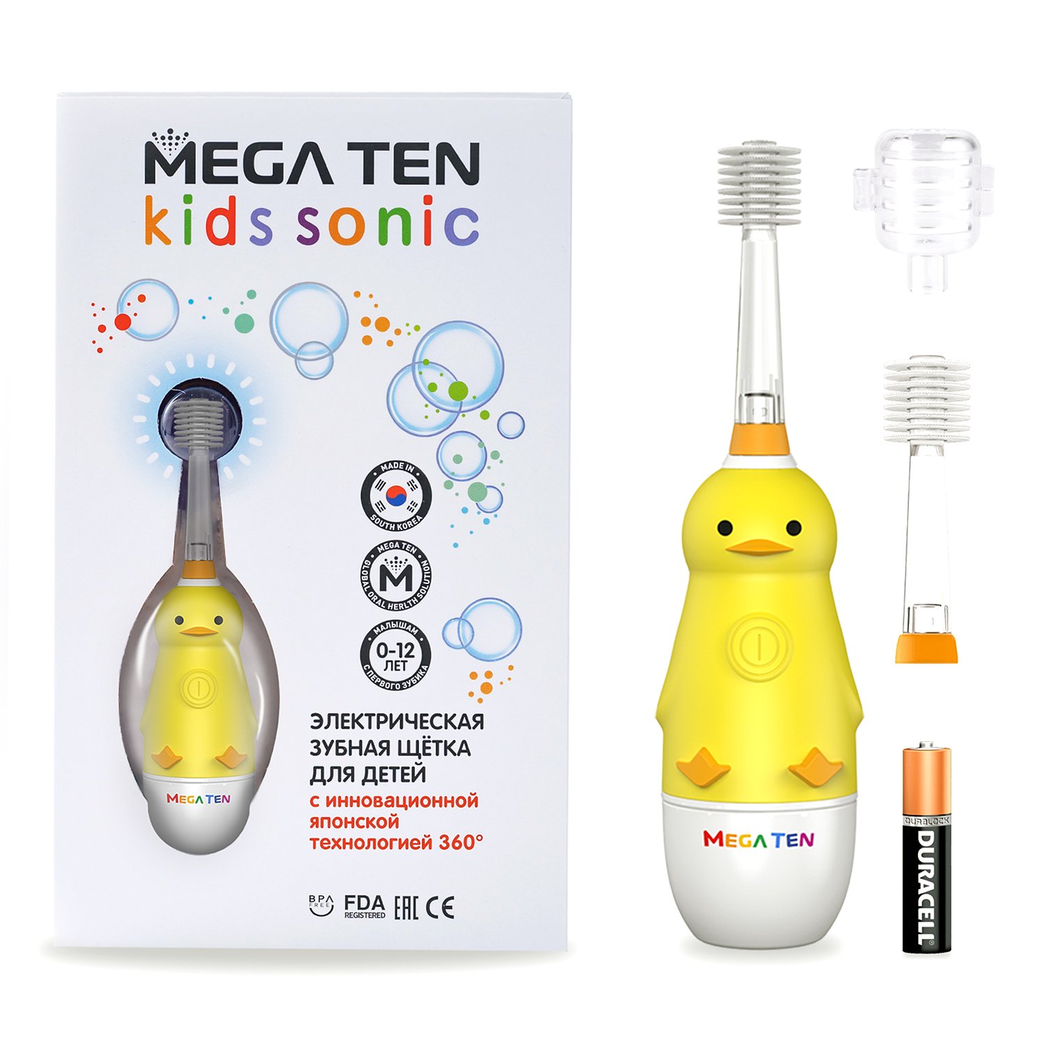 Зубная щетка электрическая Mega Ten kids sonic детская 111-MKS029 Утенок с дополнительной насадкой