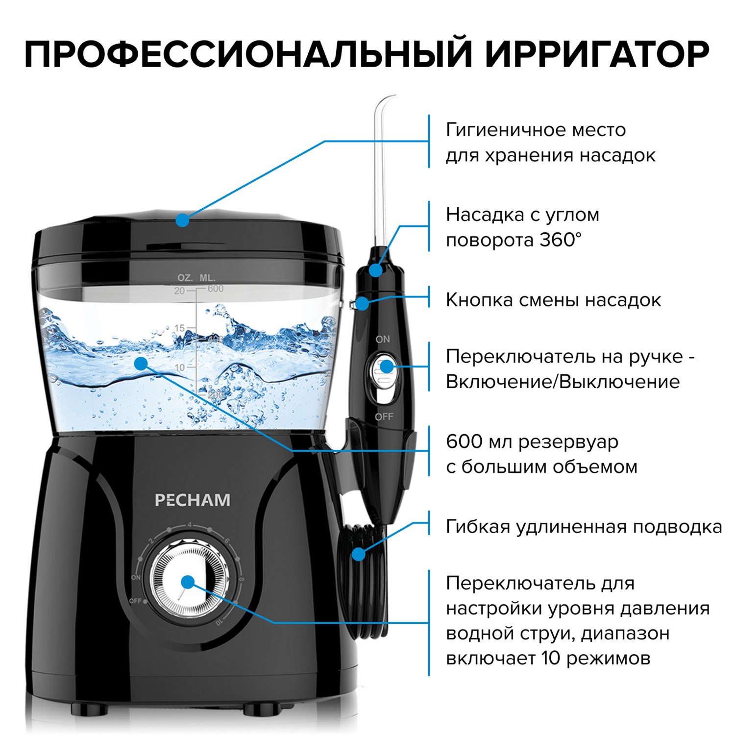 Стационарный ирригатор PECHAM Professional Black 600 мл для полости рта 070