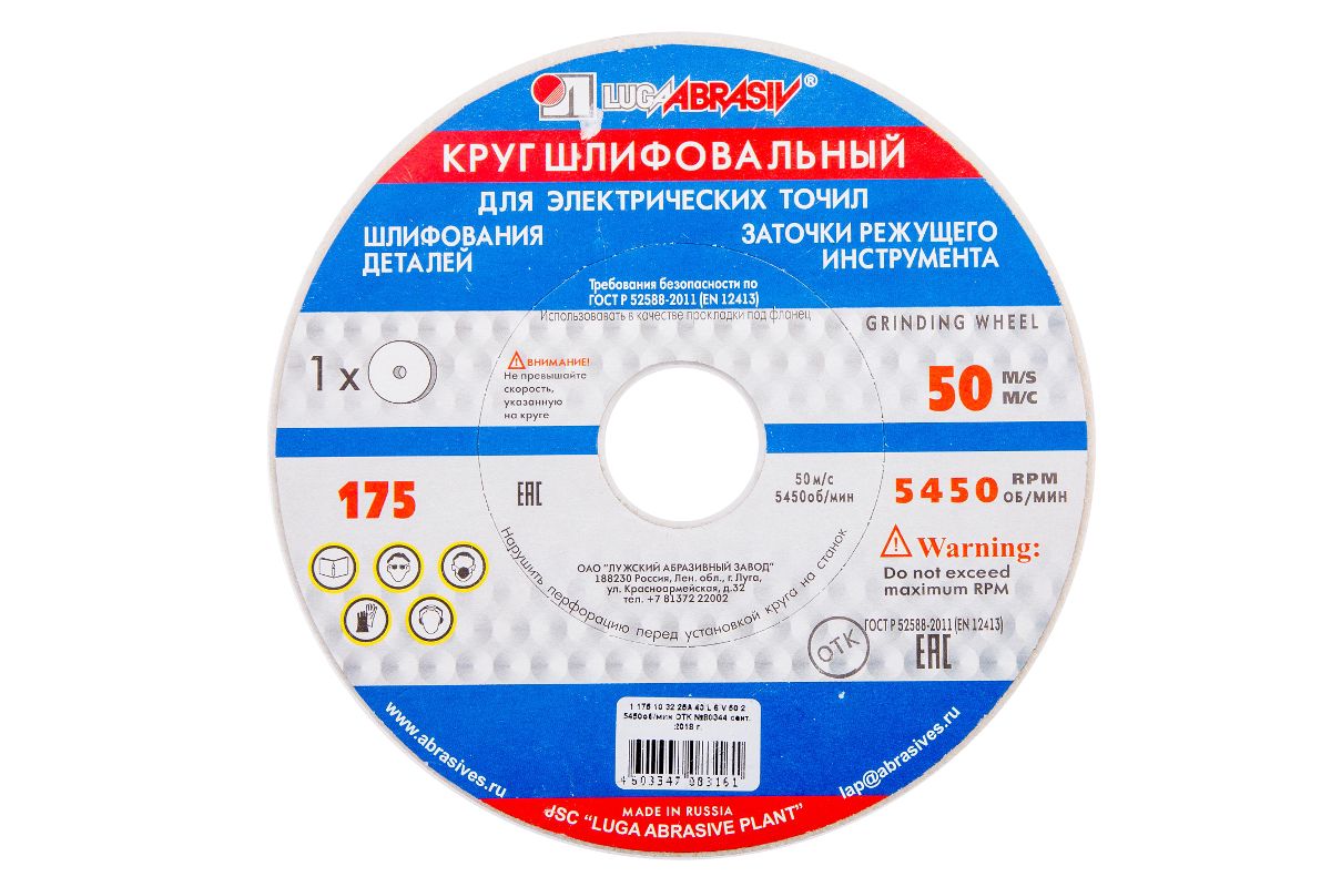 Круг шлифовальный ЛУГА-АБРАЗИВ 1 175 Х 10 Х 32 25А 40 K,L