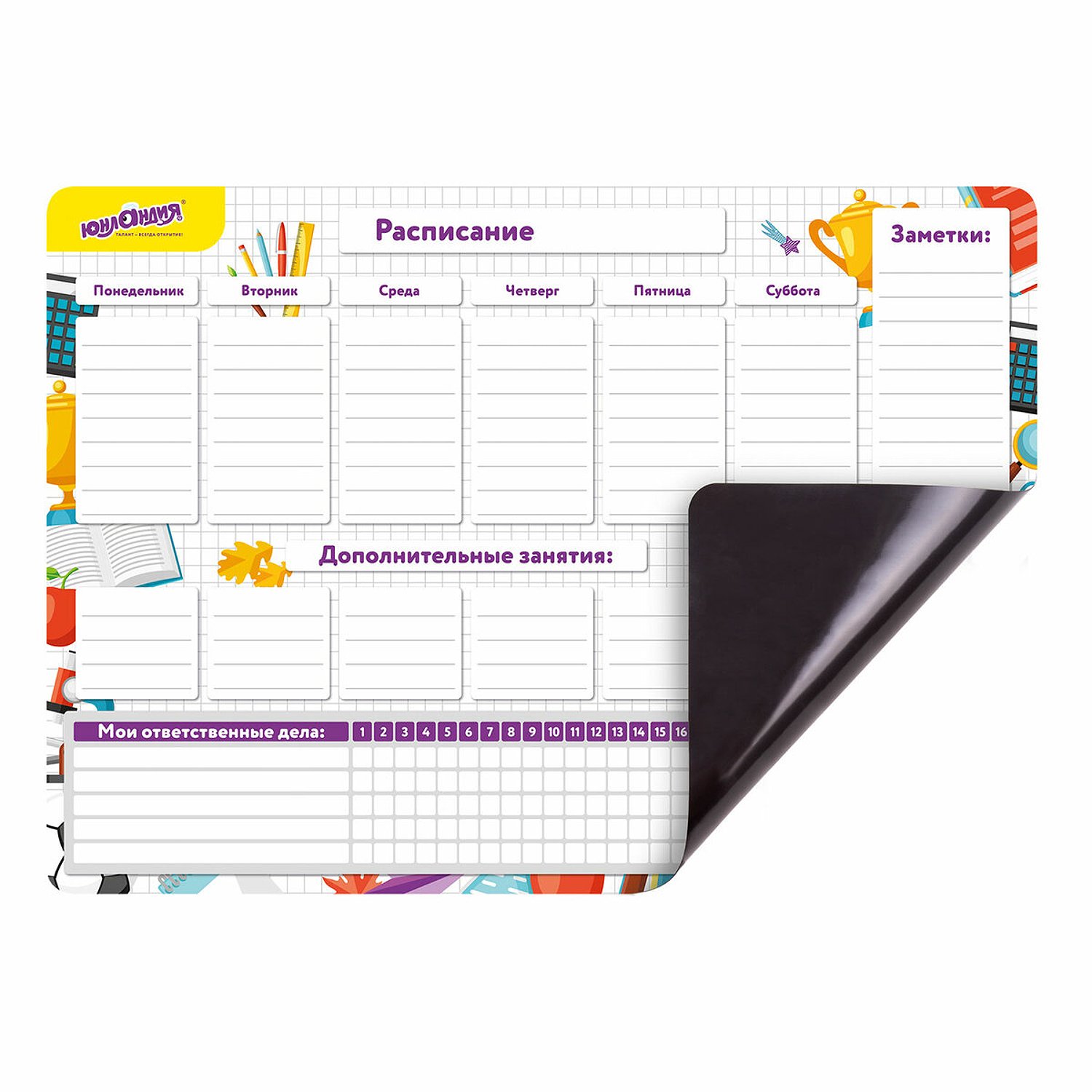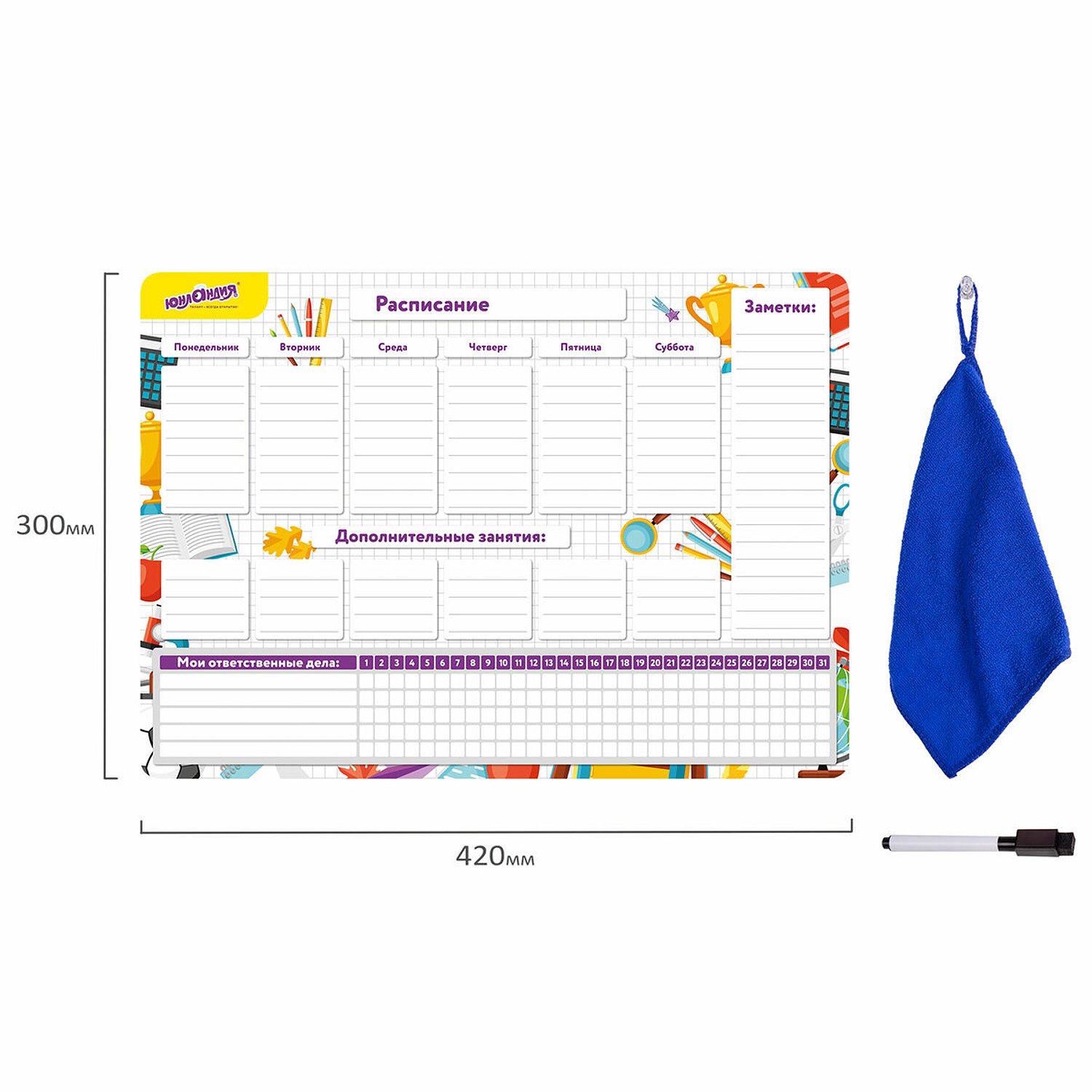 Планинг Юнландия магнитный на холодильник для заметок Список Дел 42х30см с маркером и салфеткой 237852