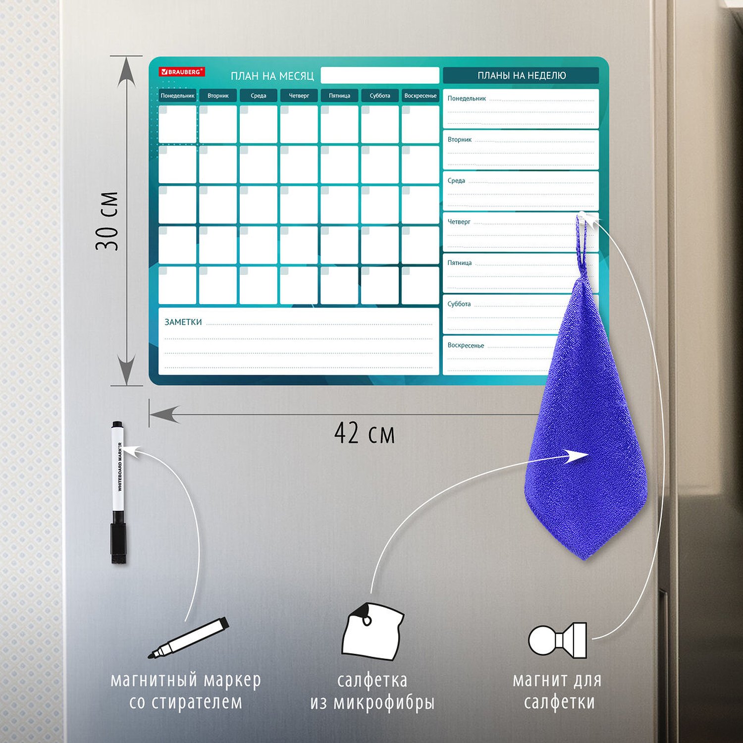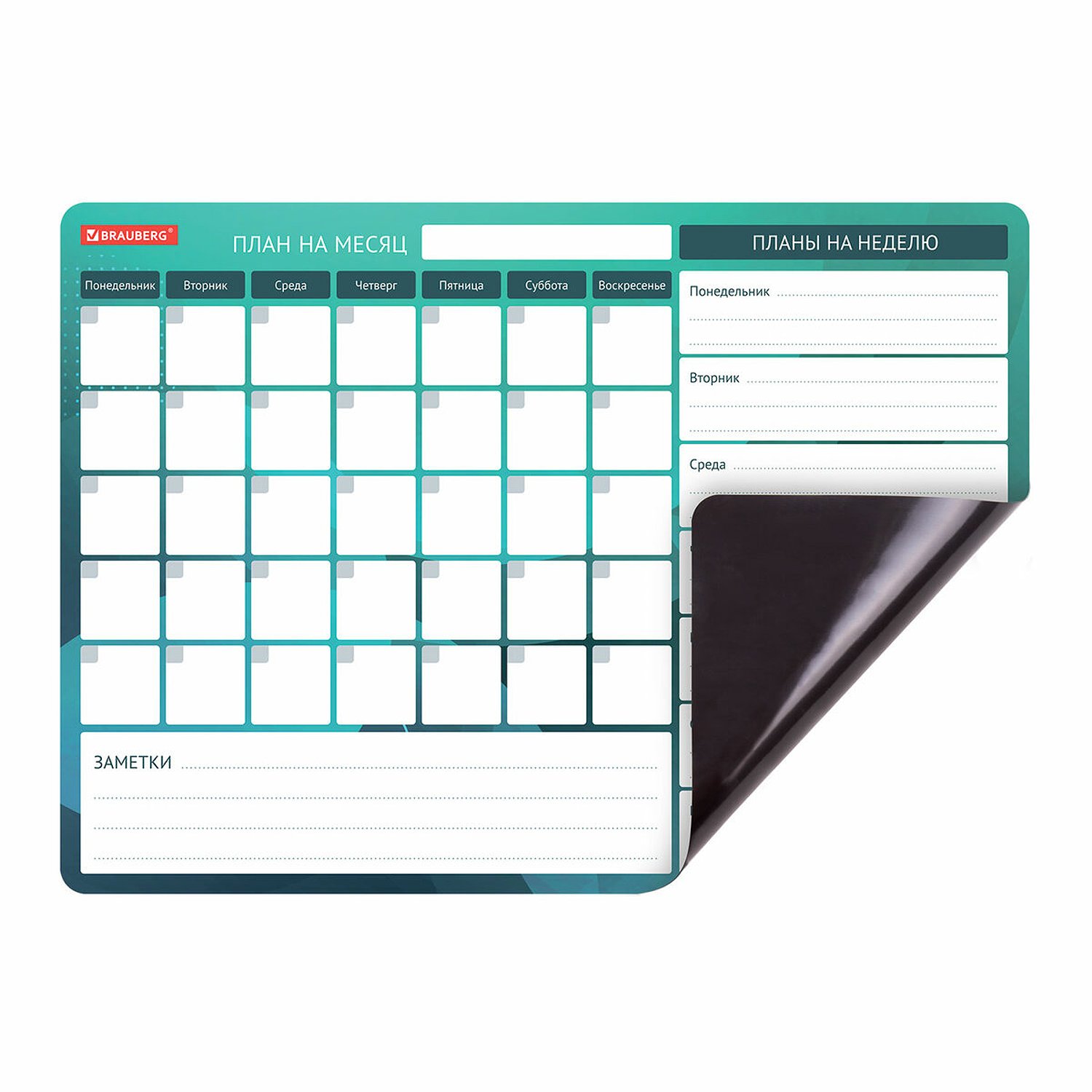 Планинг Brauberg магнитный на холодильник для заметок Месяц и Неделя на холодильник 42х30 см 237854