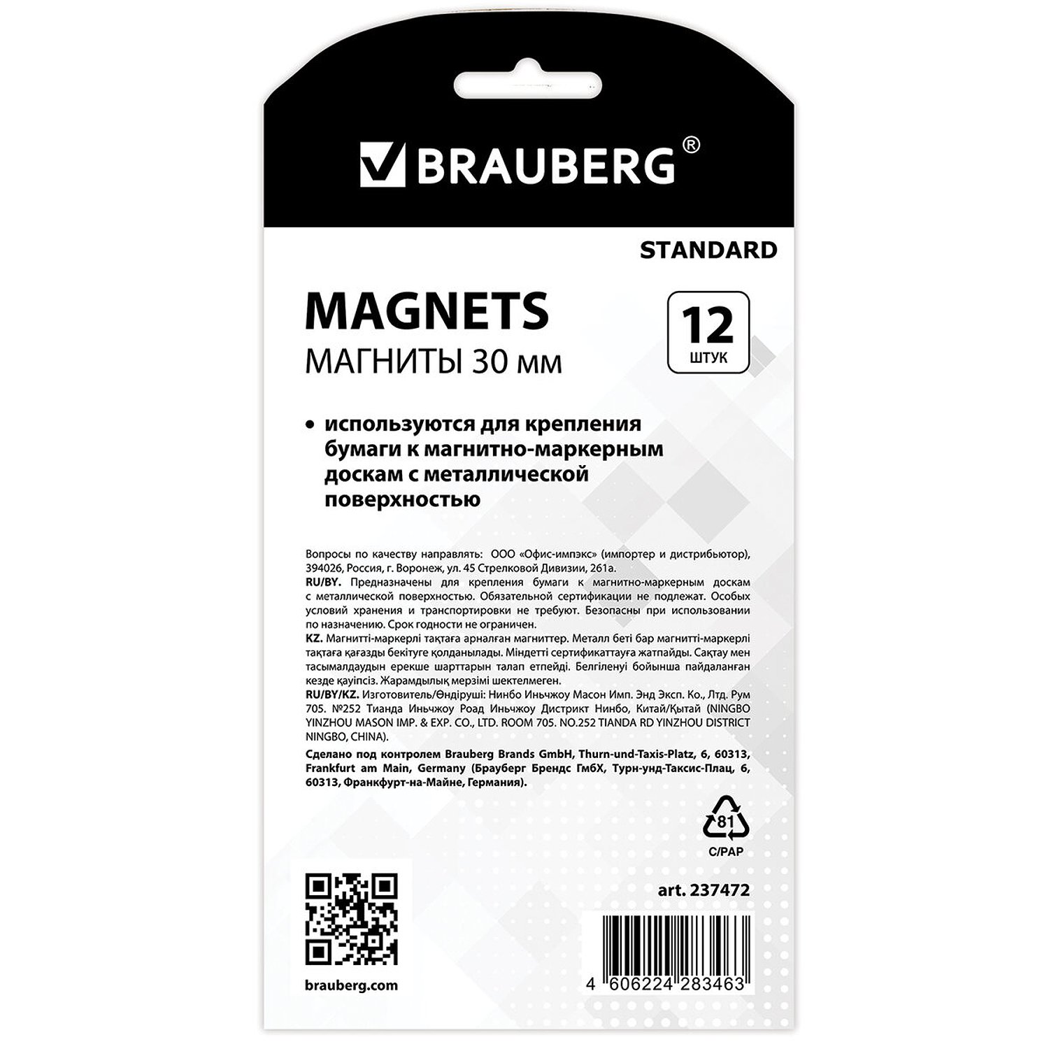 Магниты канцелярские Brauberg для магнитной доски набор 12 штук 237472