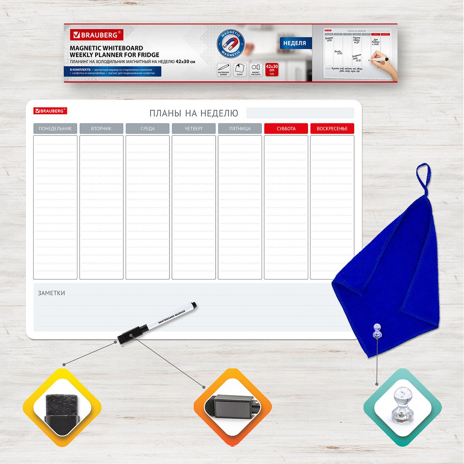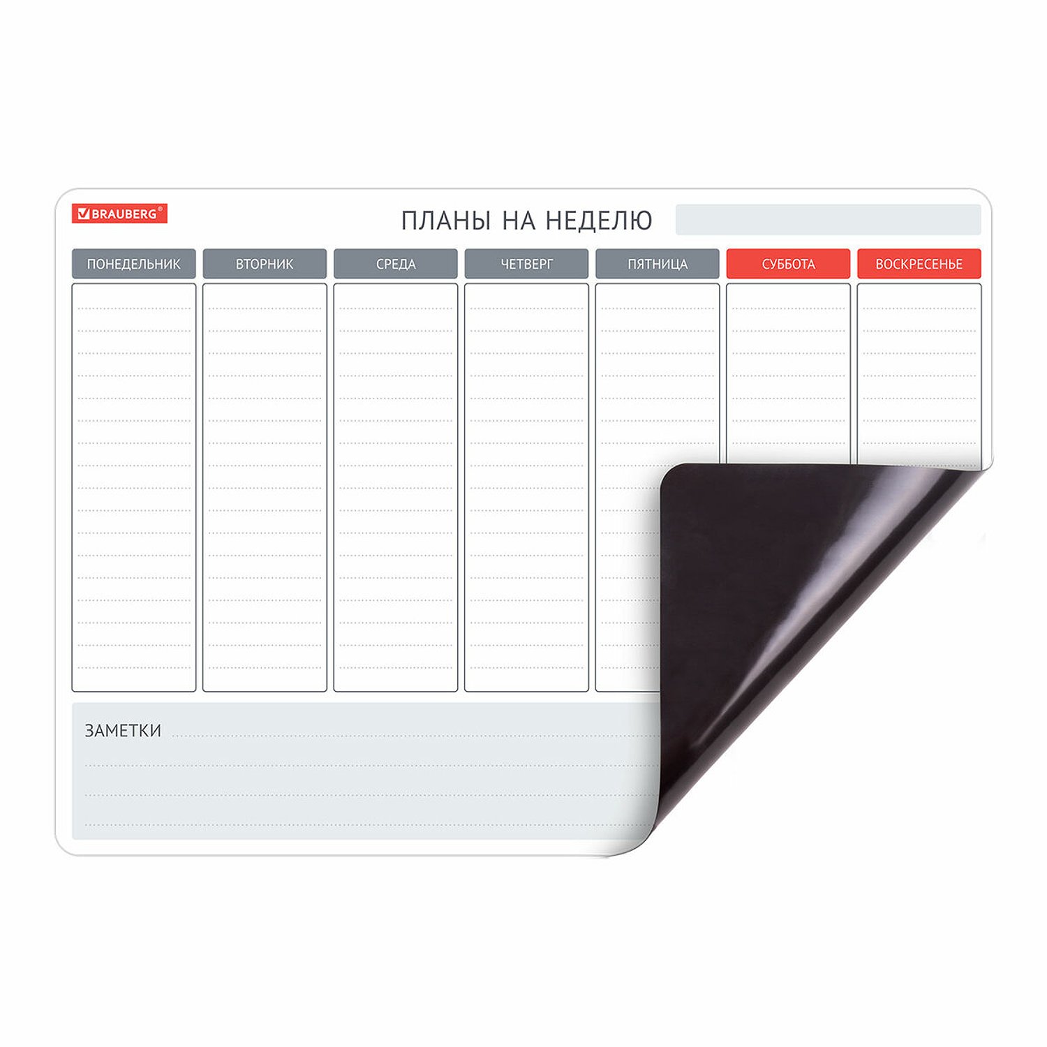 Планинг магнитный Brauberg для заметок На Неделю 42х30 см с маркером и салфеткой 237850