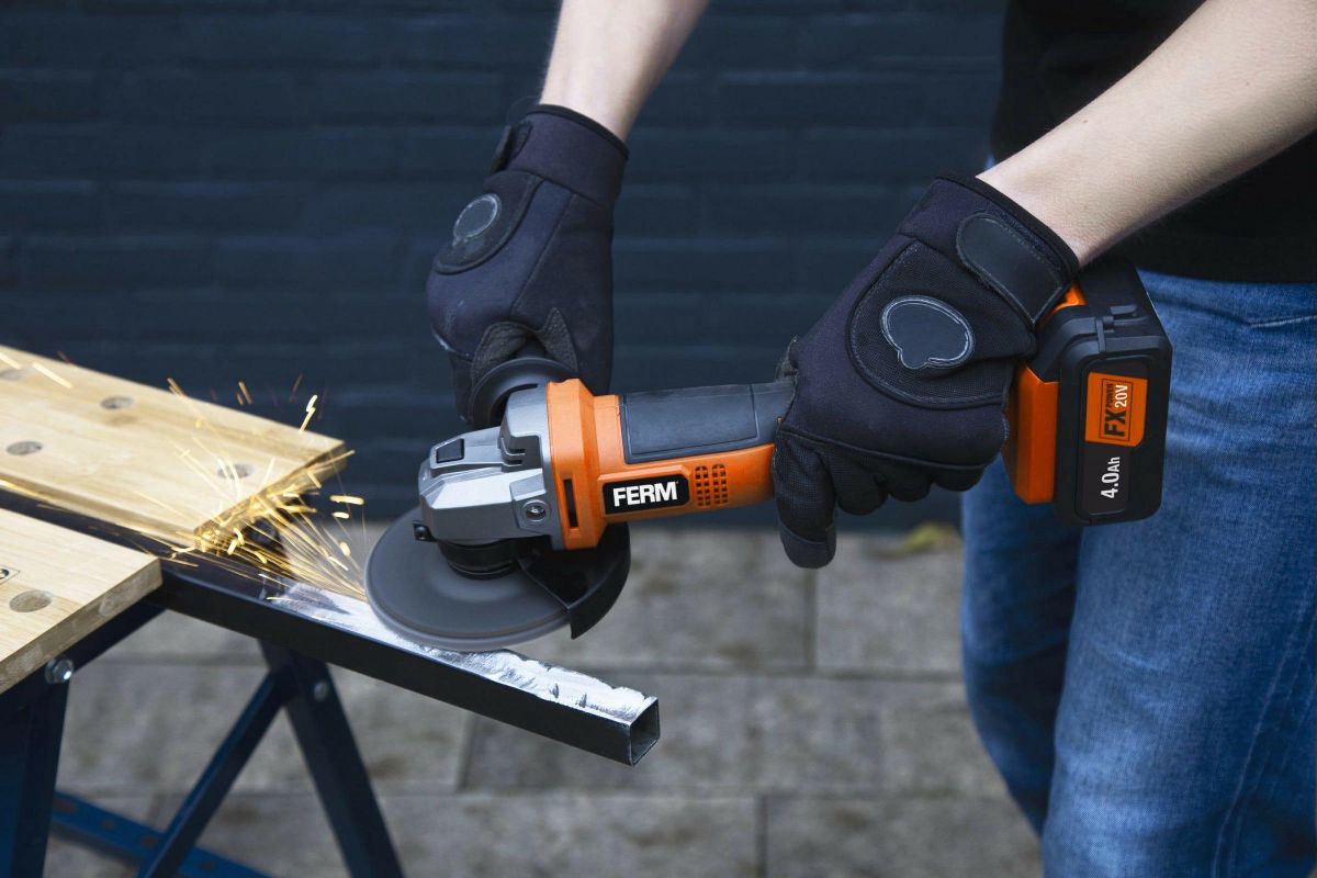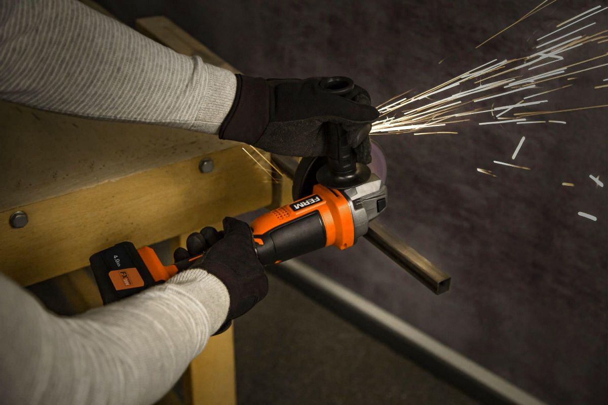 Аккумуляторная угловая шлифовальная машина FERM AGM1131 предназначена для шлифовки каменных и стальных материалов без охлаждения водой.