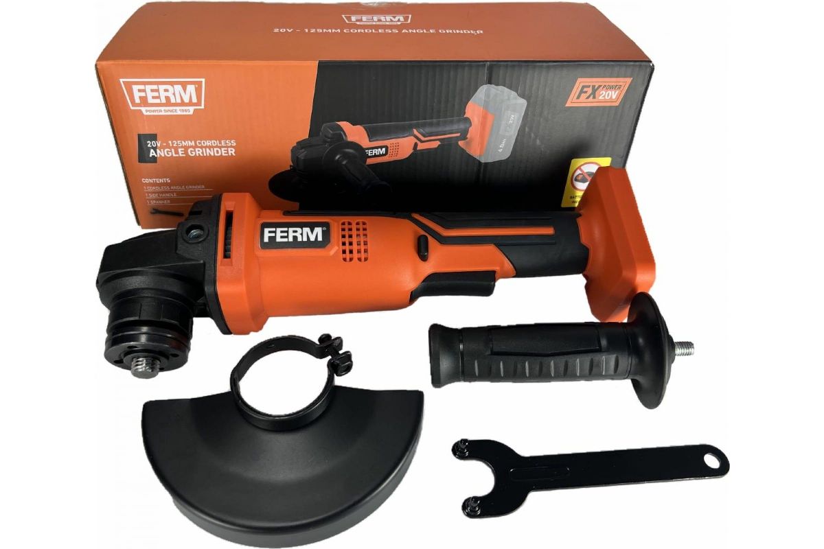 УШМ FERM AGM1131 Li-Ion 20 В Solo (без акк. батареи и ЗУ), 20В, 8000 об.мин., диск 125 мм