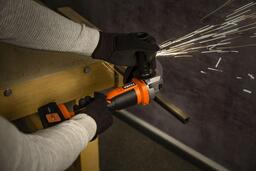Угловая шлифмашина работает от аккумуляторной батареи, что позволяет свободно передвигаться и работать в любом удобном для вас месте.