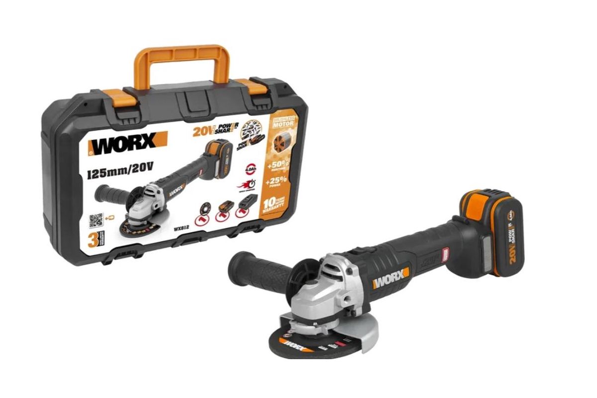 WORX WX812 – аккумуляторная угловая шлифовальная машина (болгарка) - предназначена для шлифования и подрезания металла. Технология бесщеточного мотора обеспечивает увеличение времени работы на 50%, увеличение мощности на 25% и увеличение срока службы двигаделя.