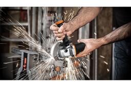 Аккумуляторная угловая шлифмашина WORX кейс WX800 предназначена для шлифования различных поверхностей. Пильный диск прикрыт защитным кожухом, что обеспечивает безопасность в процессе работы. Рукоятка с резиновой вставкой для удобного захвата. Блокировка шпинделя служит для простой и безопасной смены шлифкругов.