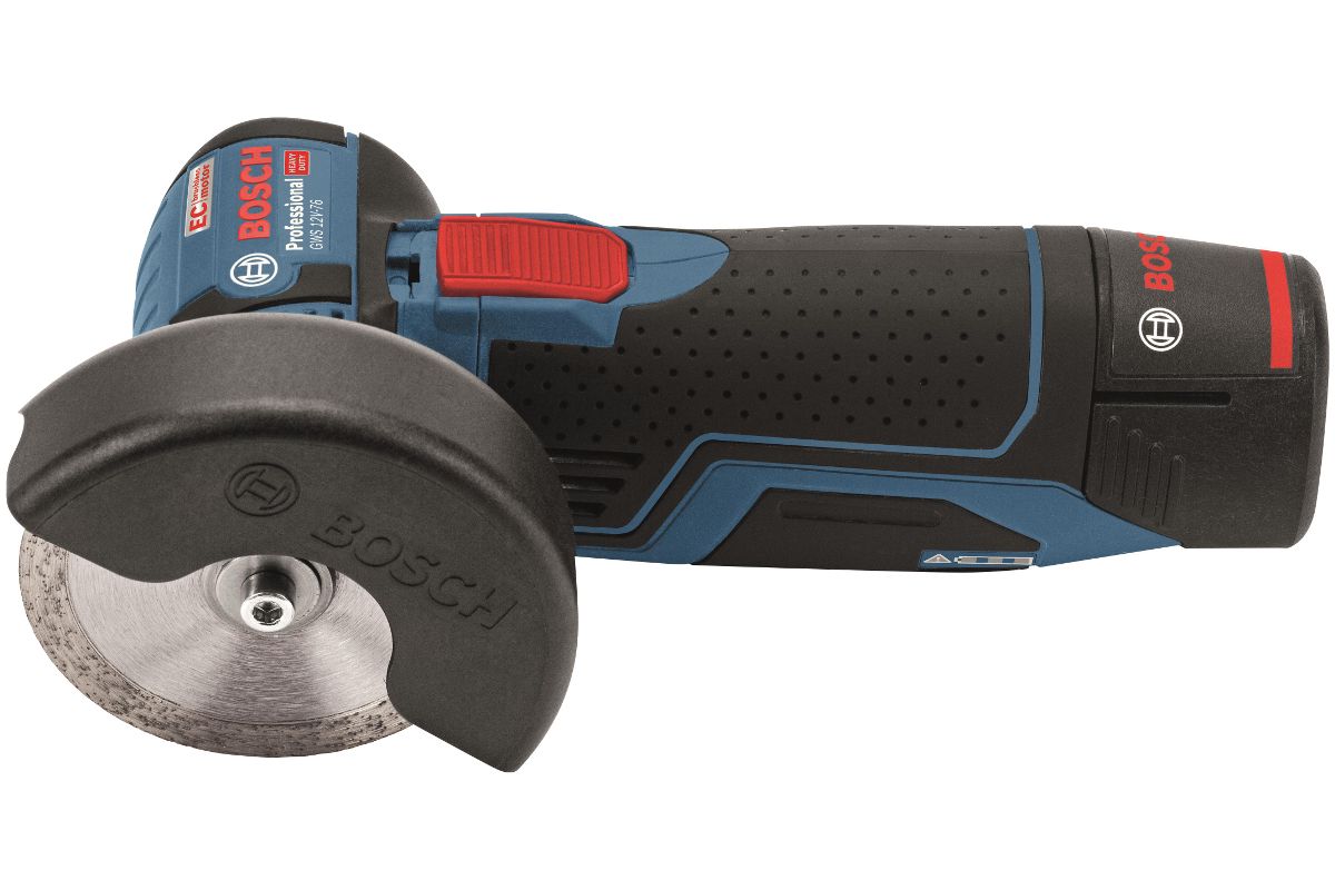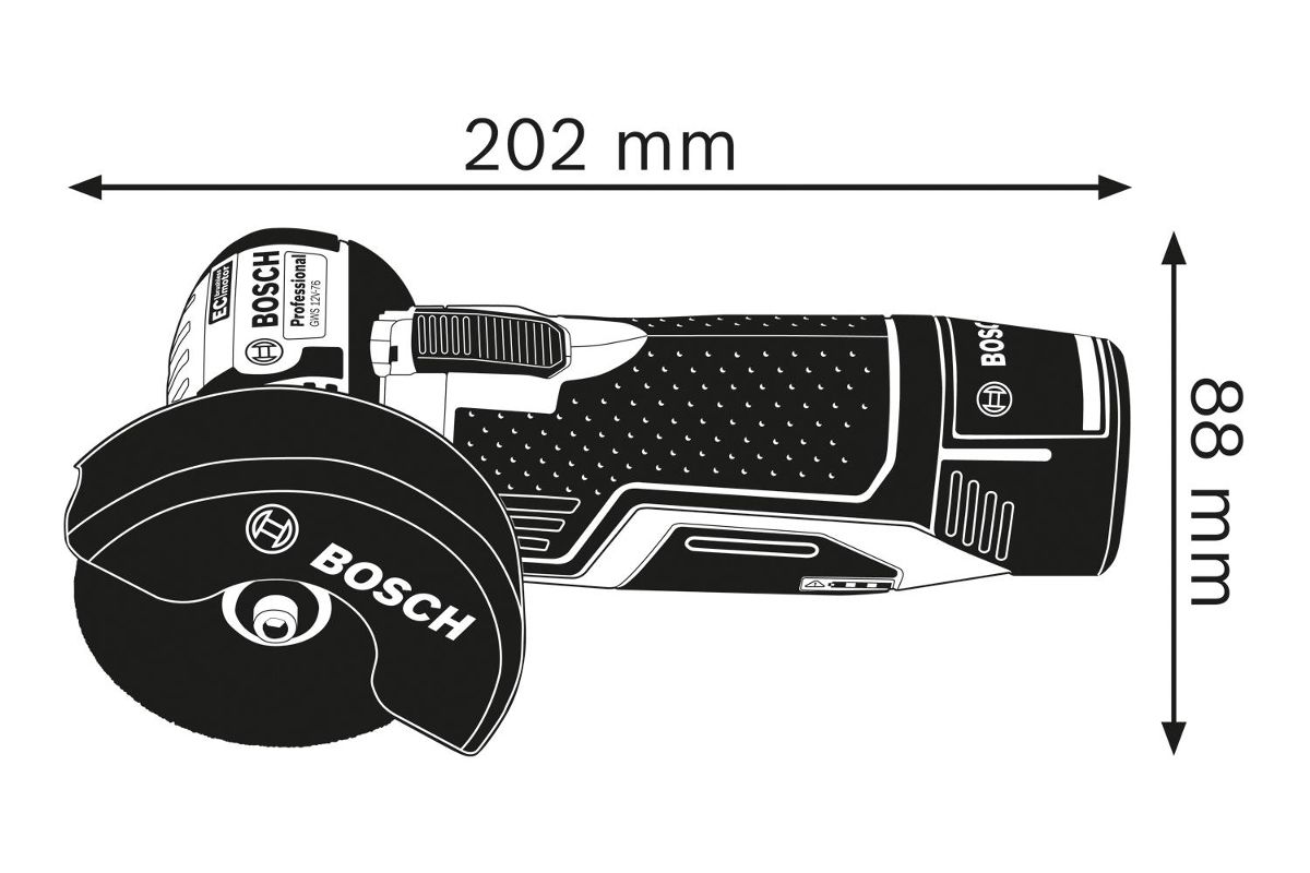 - GWS 12V-76 входит в аккумуляторную семью 12В Bosch Professional и совместима со всеми аккумуляторами из данной линейки.