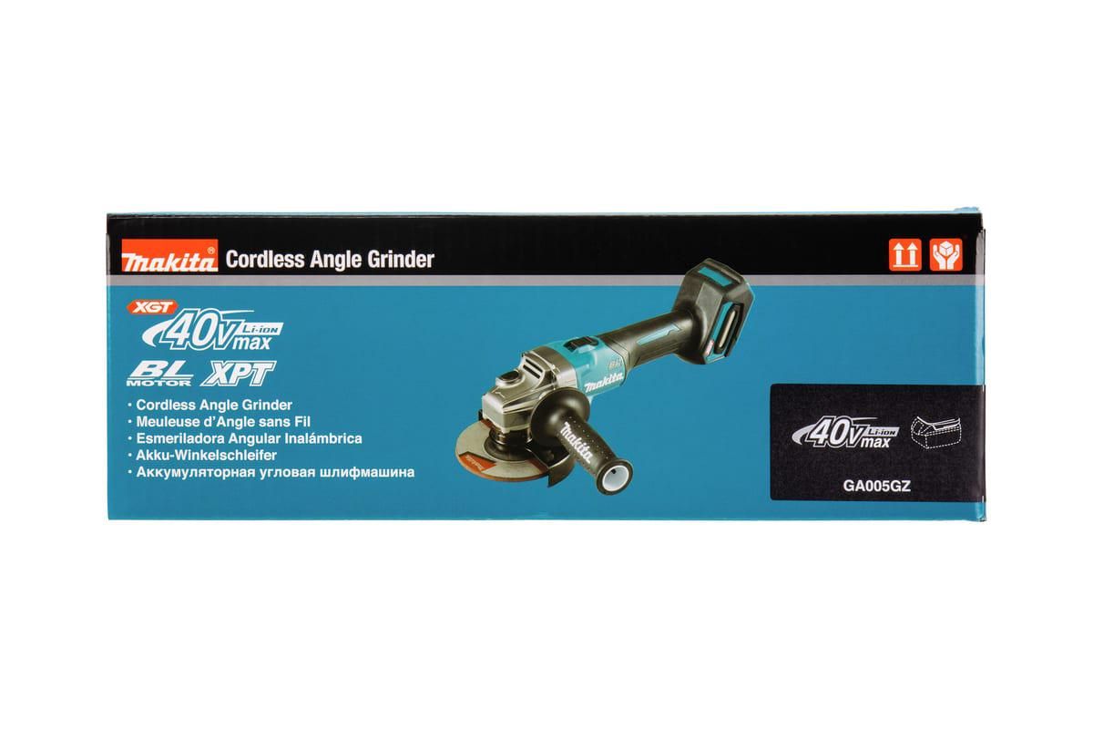 - Боковая рукоять улучшает контроль над Makita XGT GA005GZ;