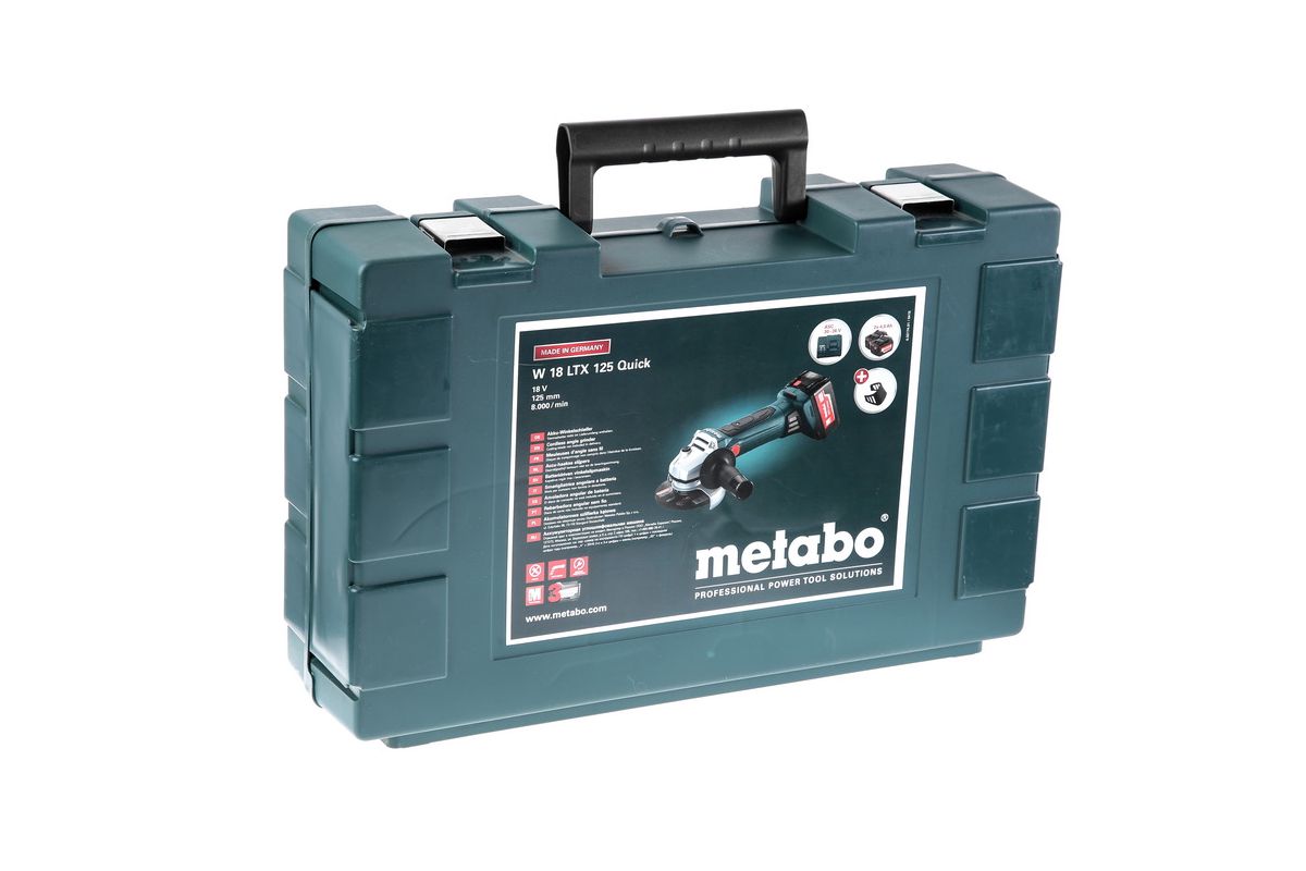 Аккумуляторная углошлифовальная машина Metabo W 18 LTX 125 4.0 – это сравнительно недавняя разработка, которую компания Metabo предлагает специально для профессиональных и бытовых пользователей, не желающих, чтобы во время работы свобода движения ограничивалась сетевым кабелем. Уникальность и важнейшее достоинство данной углошлифовальной машины в том, что, несмотря на то, что питание происходит от аккумуляторного блока, этот инструмент не испытывает недостатка в мощности и работает также производительно как и его сетевые собратья. К тому же, за счет увеличения производительности аккумуляторная углошлифовальная машина Metabo W 18 LTX 125 4.0 теперь может справляться с абсолютно любой задачей из тех, на выполнение которых раньше были способны исключительно громоздкие сетевые модели. Если раньше с аккумуляторной болгаркой можно было заниматься только резкой материалов, и то недолго, то с этой новой моделью пользователь абсолютно не ограничен в сфере ее применения, и может смело браться за шлифовку, зачистку и прочие задачи.