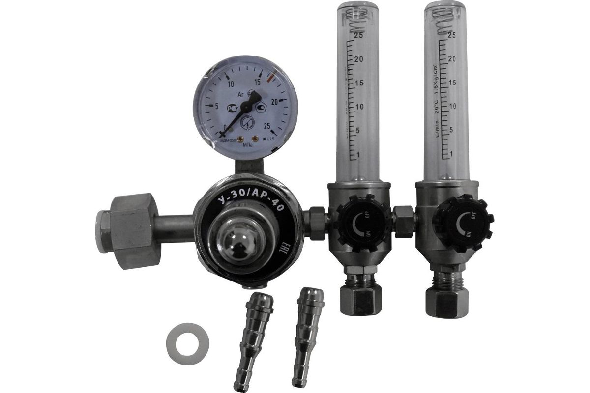 Универсальный регулятор расхода газа У-30/АР-40 предназначен для понижения давления газа (углекислого газа или аргона) и автоматического поддержания постоянным заданного значения расхода газа при обеспечении постов и установок сварки в среде защитных газов. С помощью регулирующего винта контролируется расход газа, а измеряется с помощью указателя расхода газа – ротаметра. Регулятор расхода выпускается в климатическом исполнении УХЛ2 по ГОСТ 15150, для работы в интервале температур от -25° до +50° С, для регулирования расхода углекислоты от +5° до +50° С.