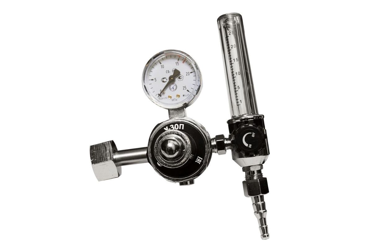Регулятор расхода газа У-30П предназначен для понижения давления газа (углекислого газа) и автоматического поддержания постоянным заданного значения расхода газа при обеспечении постов и установок сварки в среде защитных газов. С помощью регулирующего винта контролируется расход газа, а измеряется с помощью указателя расхода газа – ротаметра. Регулятор оборудован подогревателем для подключения к сети 220В. Регулятор расхода выпускается в климатическом исполнении УХЛ2 по ГОСТ 15150, для работы в интервале температур от -25° до +50° С, для регулирования расхода углекислоты от +5° до +50° С.