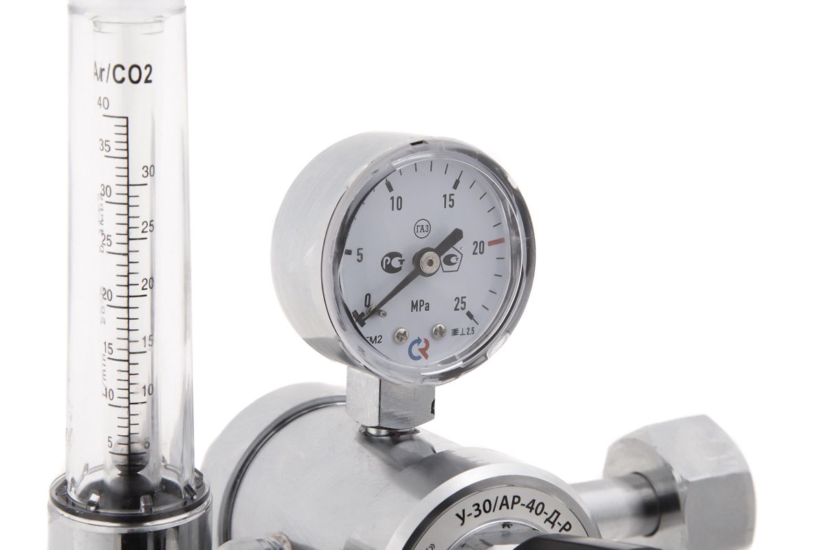 - Две шкалы ротаметра для аргона и углекислоты позволяют точно контролировать расход используемого газа;