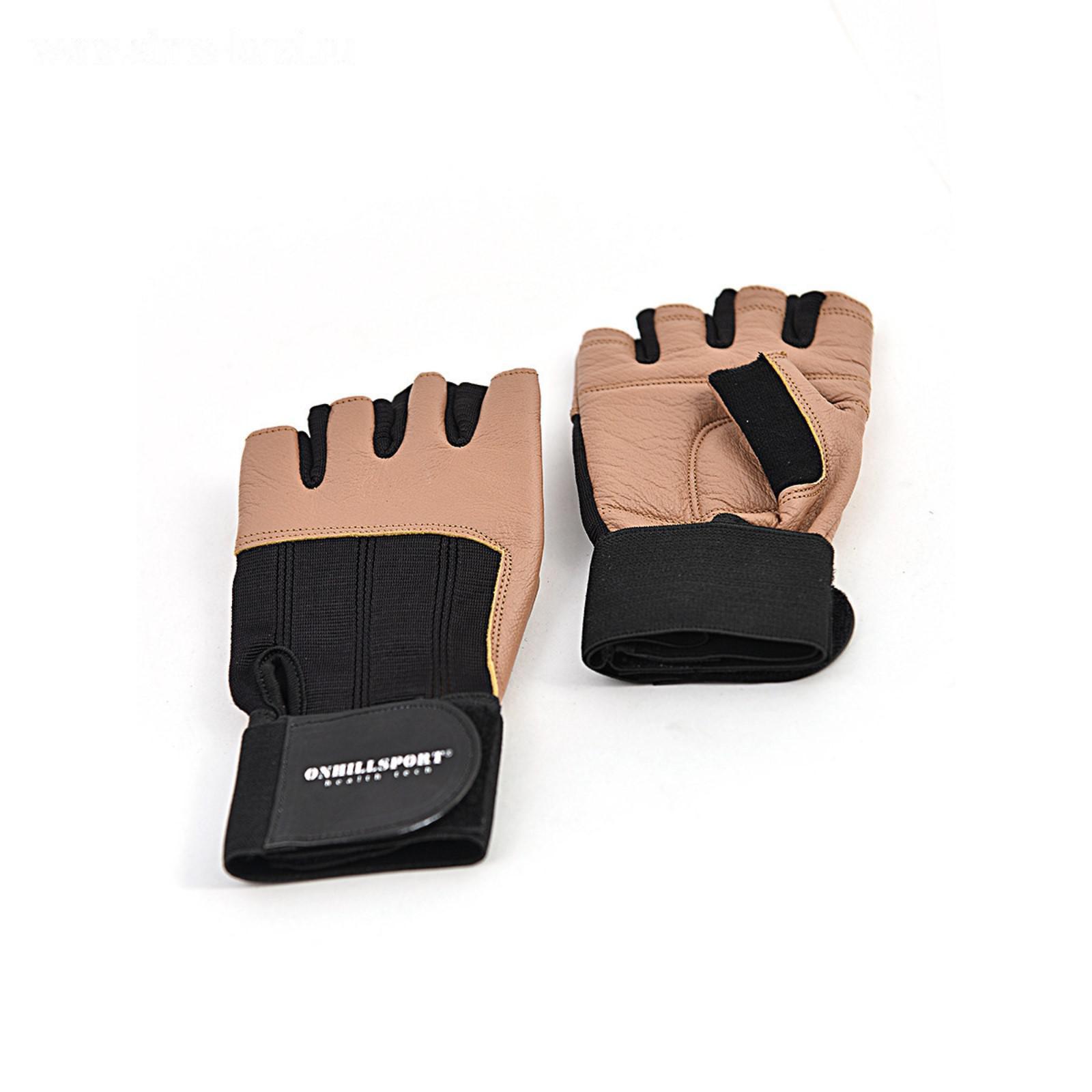 Перчатки для фитнеса мужские кожаные Q11, цвет чёрный/коричневый, цвет S