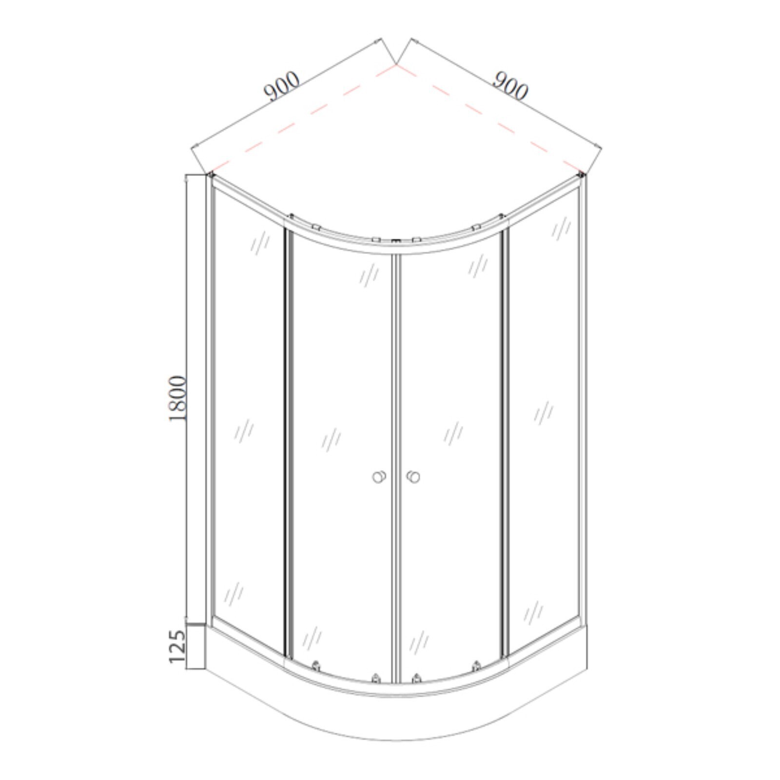 • Размер (Длина × Ширина × Высота) 90 см х 90 см х 192,5 см