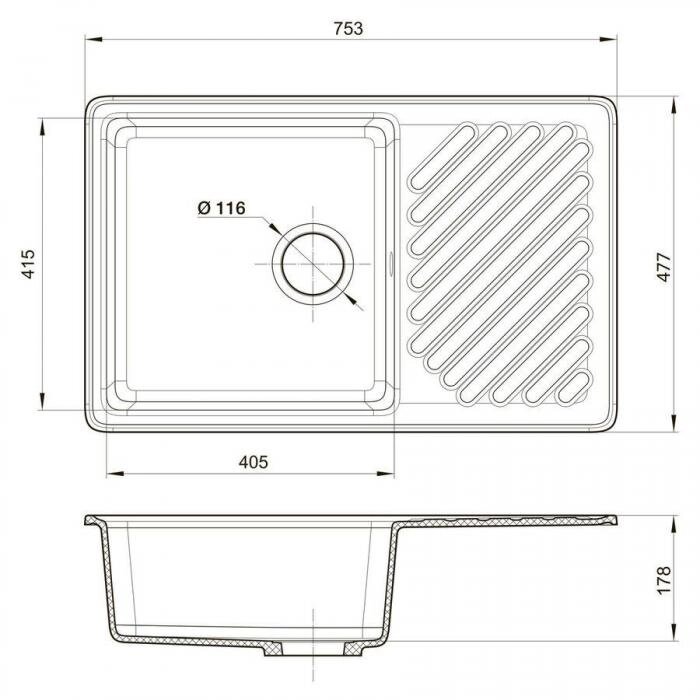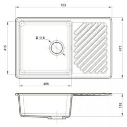 Кухонная мойка GRANFEST Quarz Z52, кварц, 75.3см х 47.7см, песочный