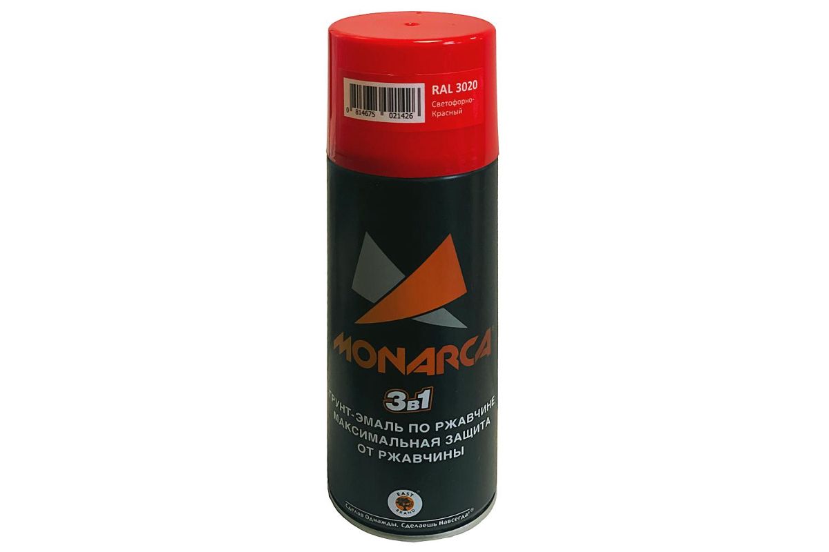 Грунт-эмаль по ржавчине аэрозольная MONARCA 83020 (520 мл, 270г.), RAL3020 Светофорно-Красный