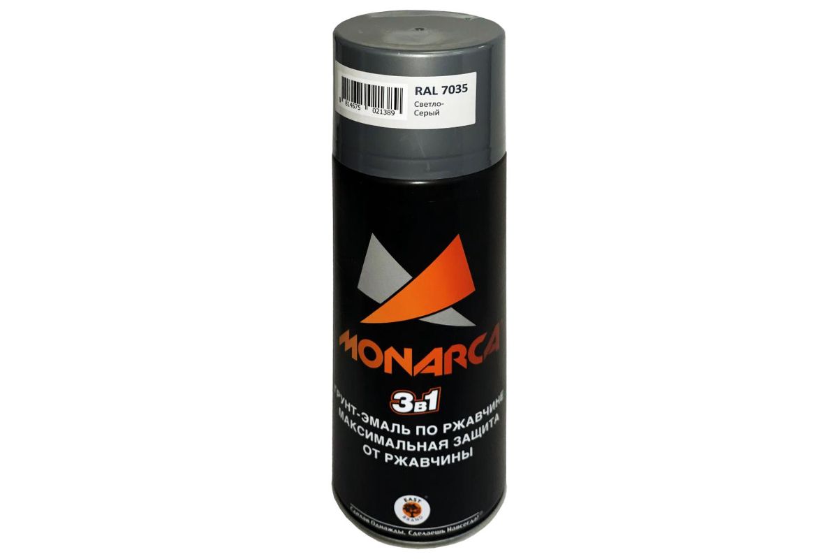 Грунт-эмаль по ржавчине аэрозольная MONARCA 87035 (520 мл, 270г.), RAL7035 Светло-Серый