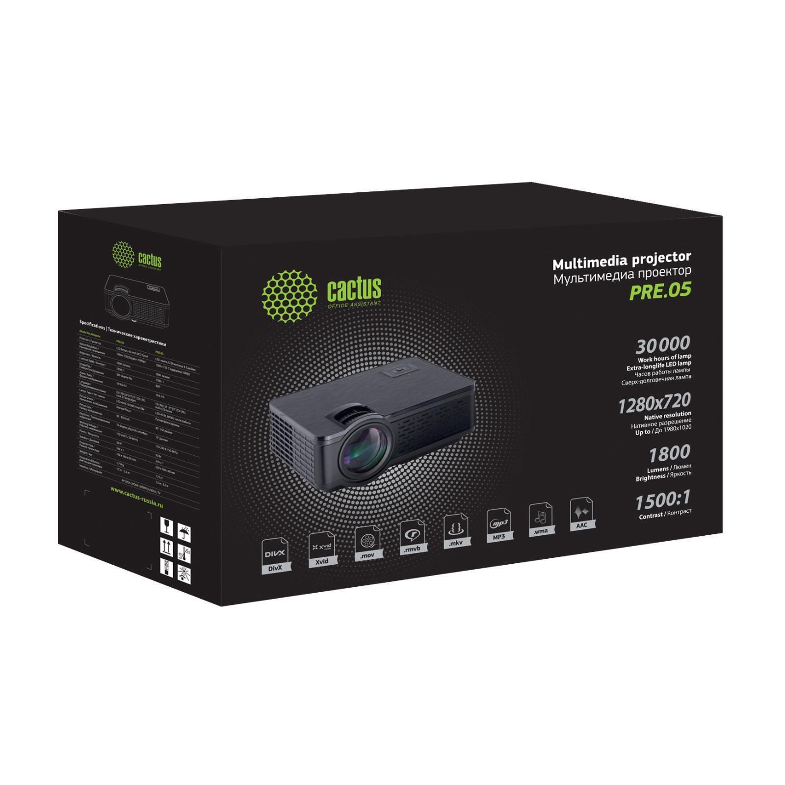 Проектор Cactus CS-PRE.05B.WXGA,1800лм,1280x720,1500:1,ресурс лампы:30000ч,USB,HDMI,черный