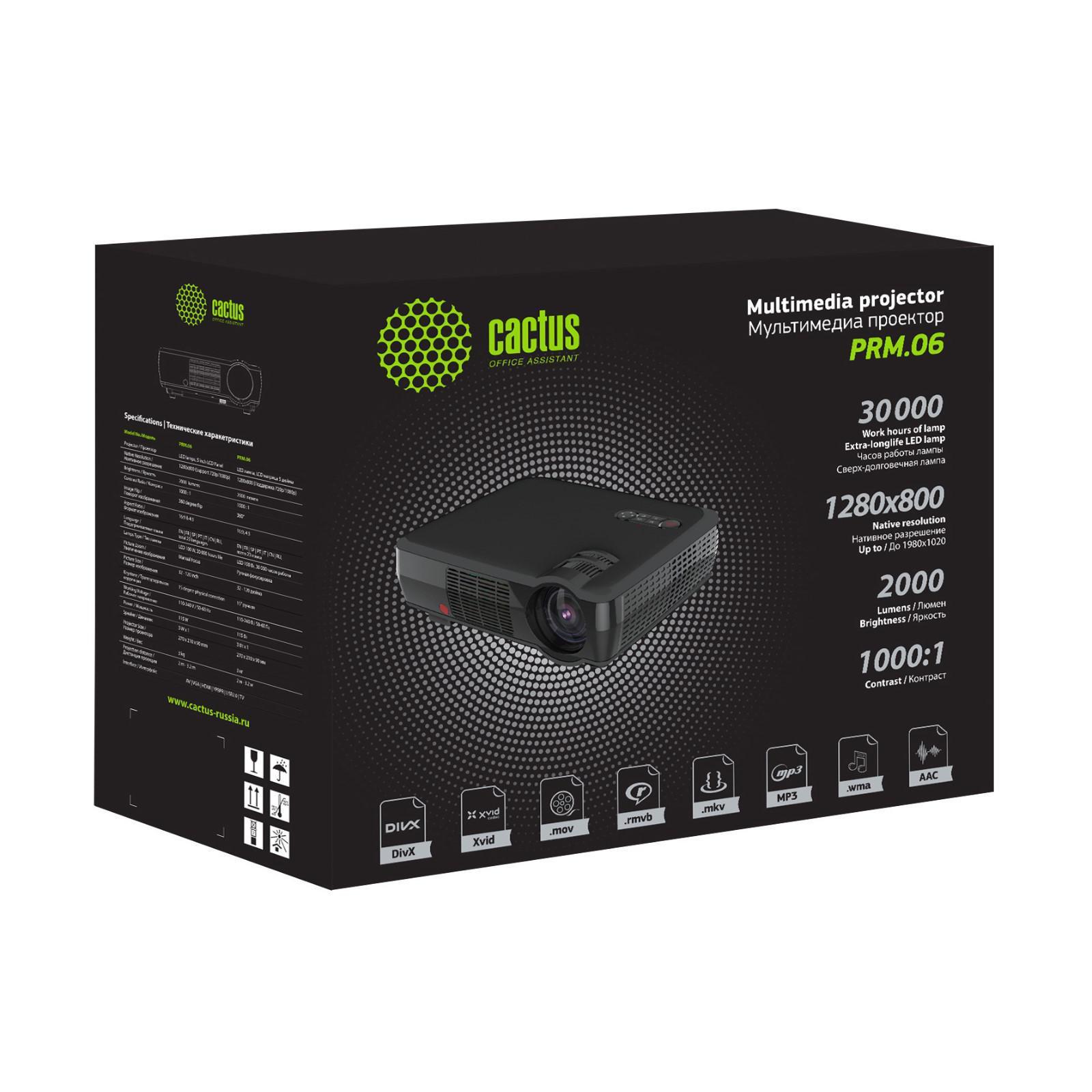Проектор Cactus CS-PRM.06B.WVGA,2000лм,1280x800,1000:1,ресурс лампы:30000ч,USB,HDMI,черный