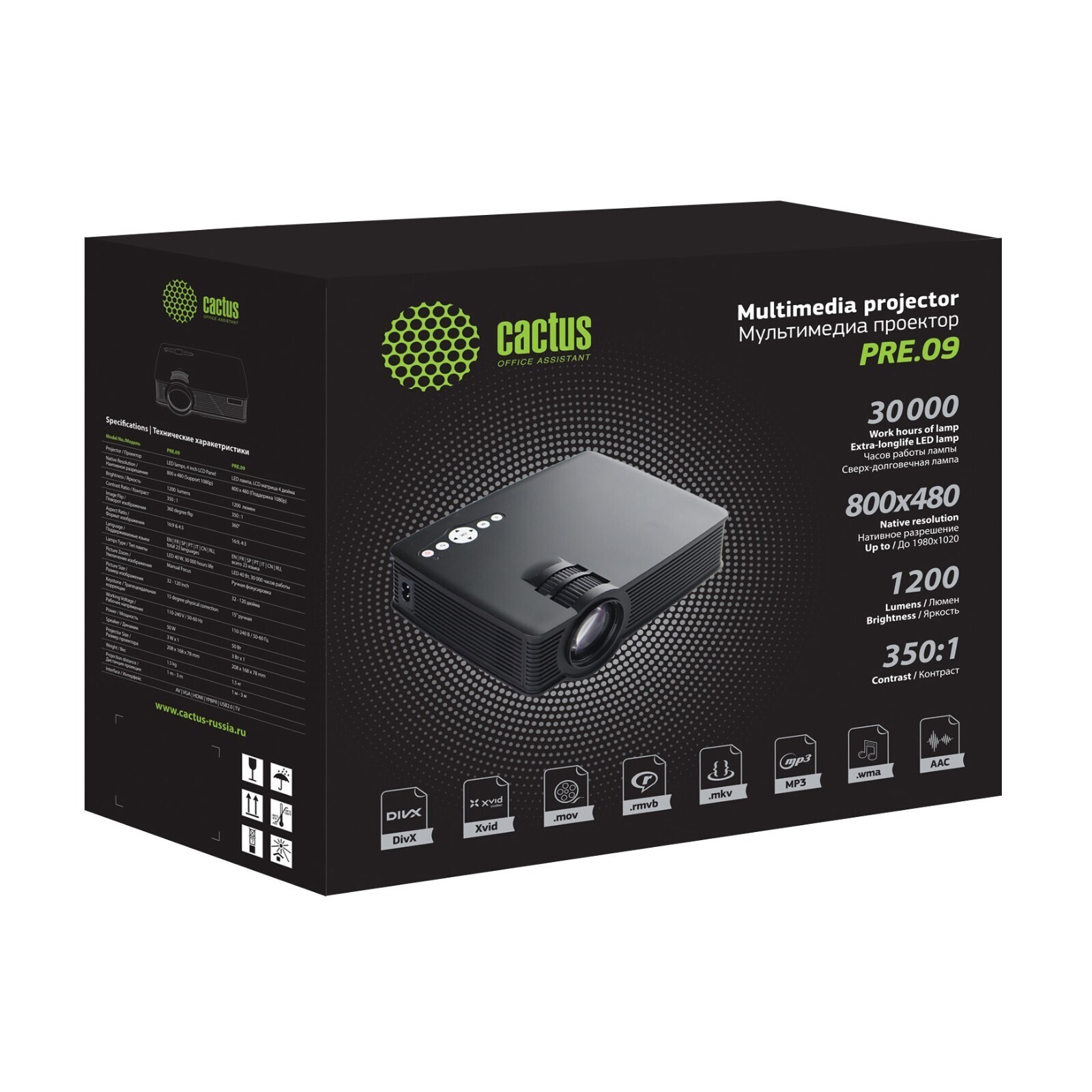 Проектор Cactus CS-PRE.09B.WVGA, 1200лм,1280x600,350:1, ресурс лампы:30000часов,USB,HDMI