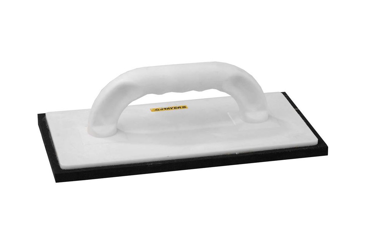 - Полистирол, из которого произведена терка, обладает повышенной износостойкостью к истиранию, а резиновое покрытие обеспечивает равномерное нанесение и не царапает обрабатываемую поверхность.