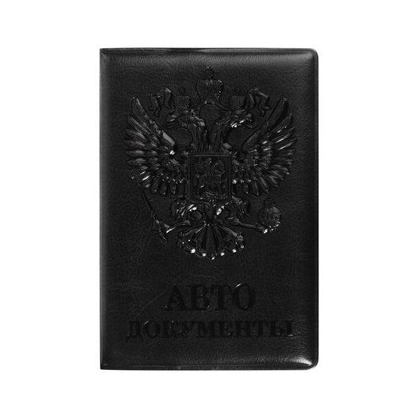 Модель выполнена из полиуретана, напоминающего кожу в черном цвете, украшена гербом Российской Федерации и тисненой надписью "АВТОДОКУМЕНТЫ". Имеет 6 пластиковых карманов и карман для водительских прав. Благодаря компактным размерам 95х130 мм удобно всегда носить с собой.