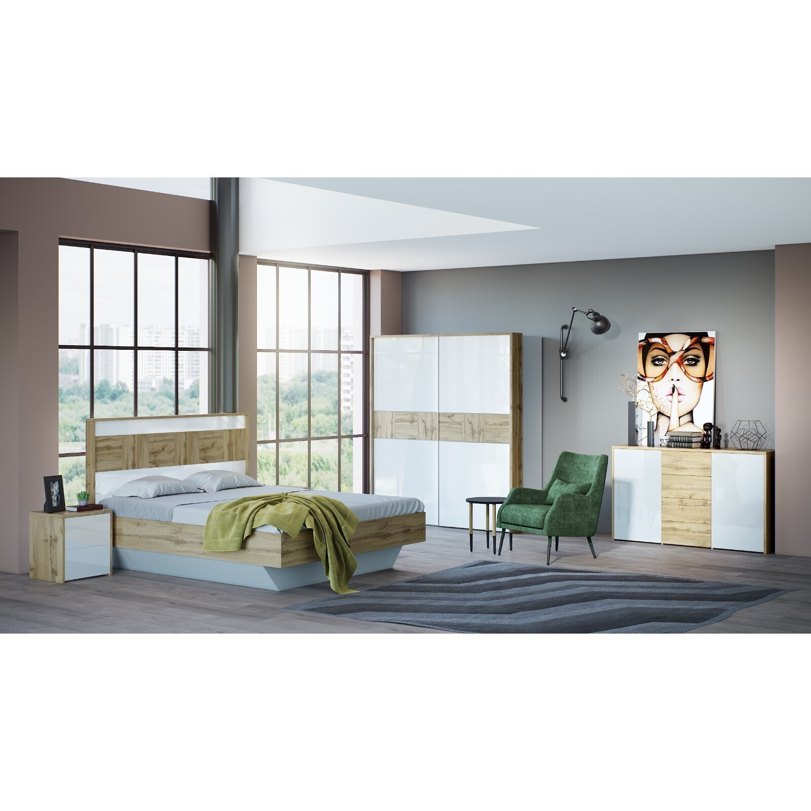 Спальный гарнитур «Аризона 2», кровать, тумба, шкаф-купе, комод, дуб вотан/белый