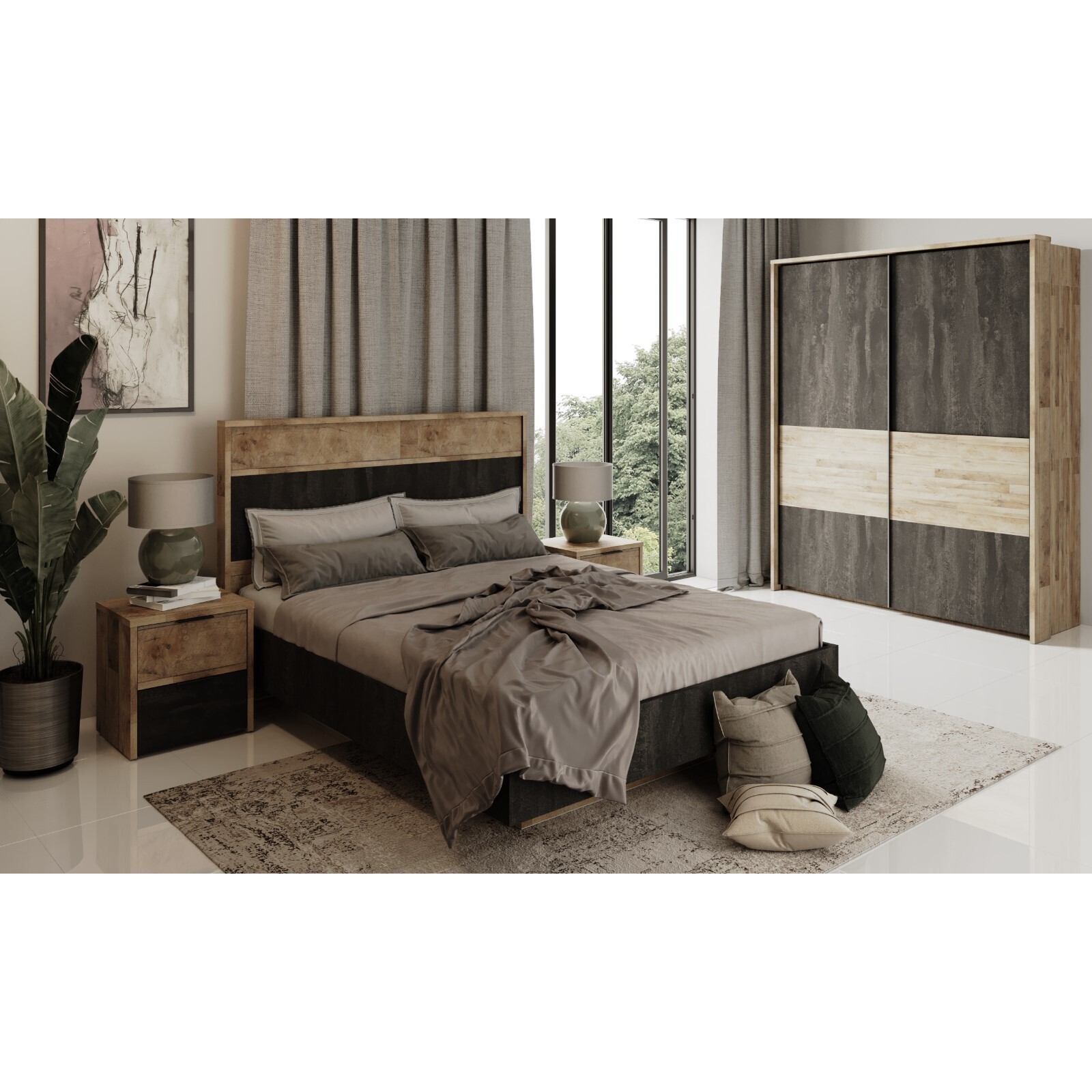 Спальня «Кения 6», кровать, шкаф-купе, тумба 2 шт, цвет гамбия / угольный камень