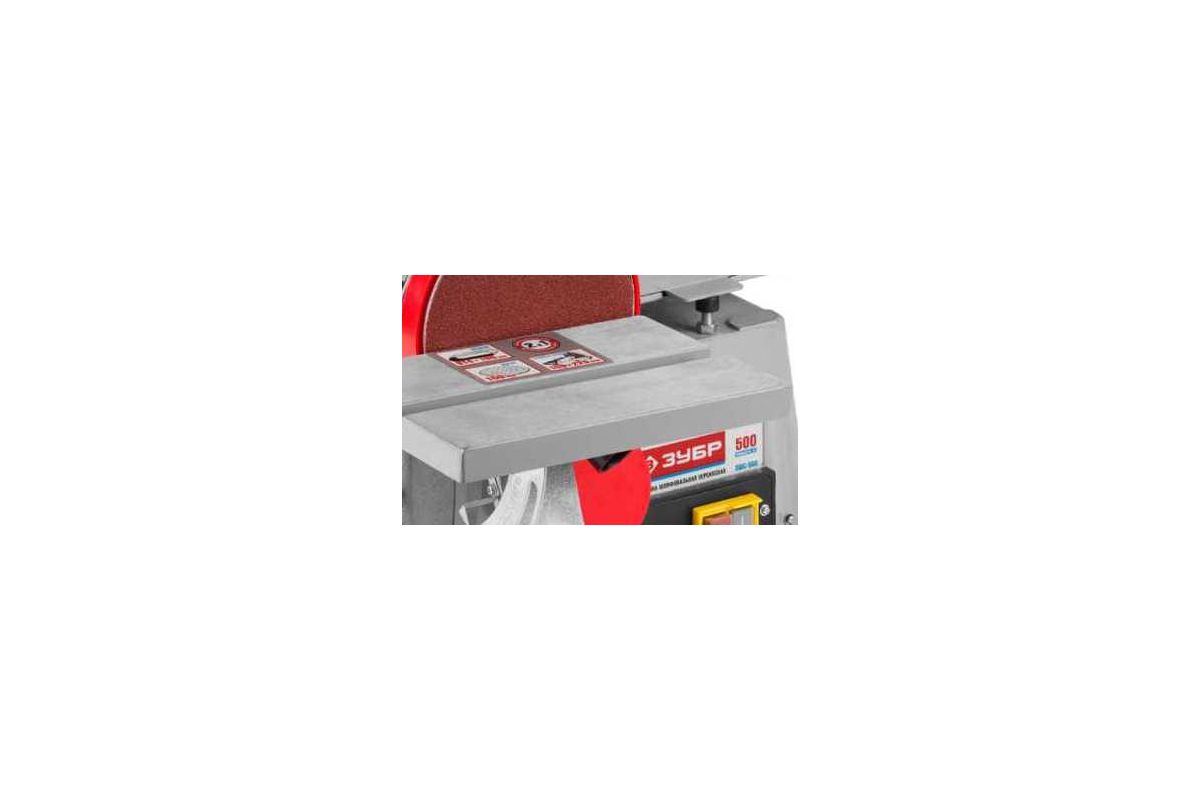 ЗУБР ЗШС-500 – переносной шлифовальный станок мощностью 500 Вт. Обеспечивает функциональность шлифовального круга и ленты. Конструкция позволяет регулировать угол наклона рабочего стола, что расширяет возможности станка. Электромагнитные кнопки предотвращают автоматический перезапуск двигателя. Широкая лента может обрабатывать существенные площади – до 350х100 мм.