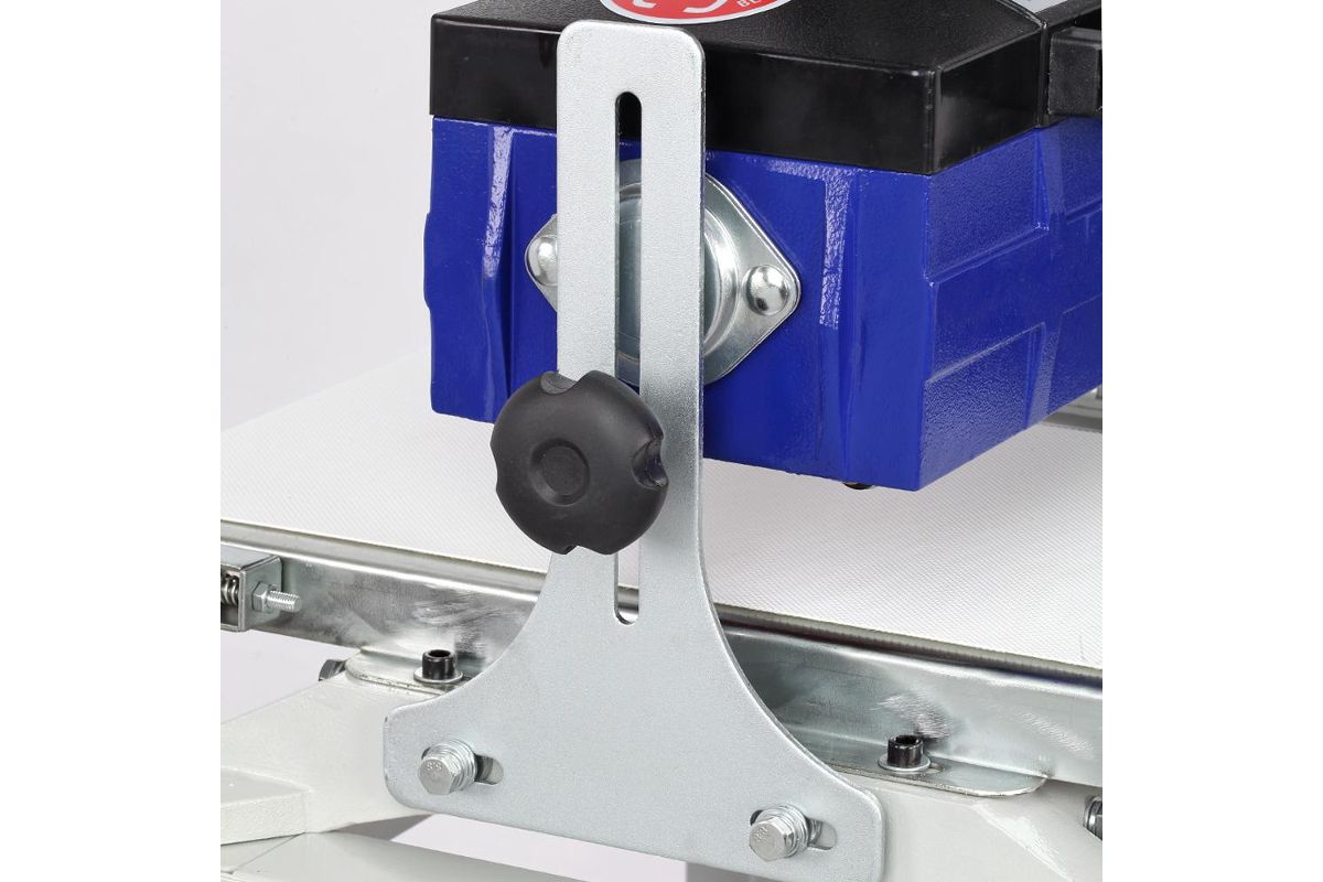 Станина выполнена из чугуна. Подставка – сборная стальная. Она снабжена складными ручками и парой колёс для удобного перемещения станка по мастерской.