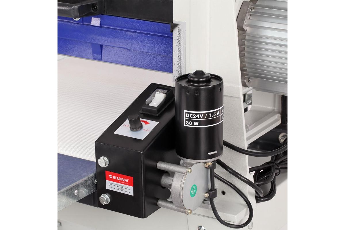В станке реализована функция автоподачи. Заготовка протягивается транспортной лентой из специального нескользящего материала. В движение ленту приводит дополнительный коллекторный электродвигатель мощностью 80 Вт. Скорость подачи регулируется от 0 до 3,5 м/мин.