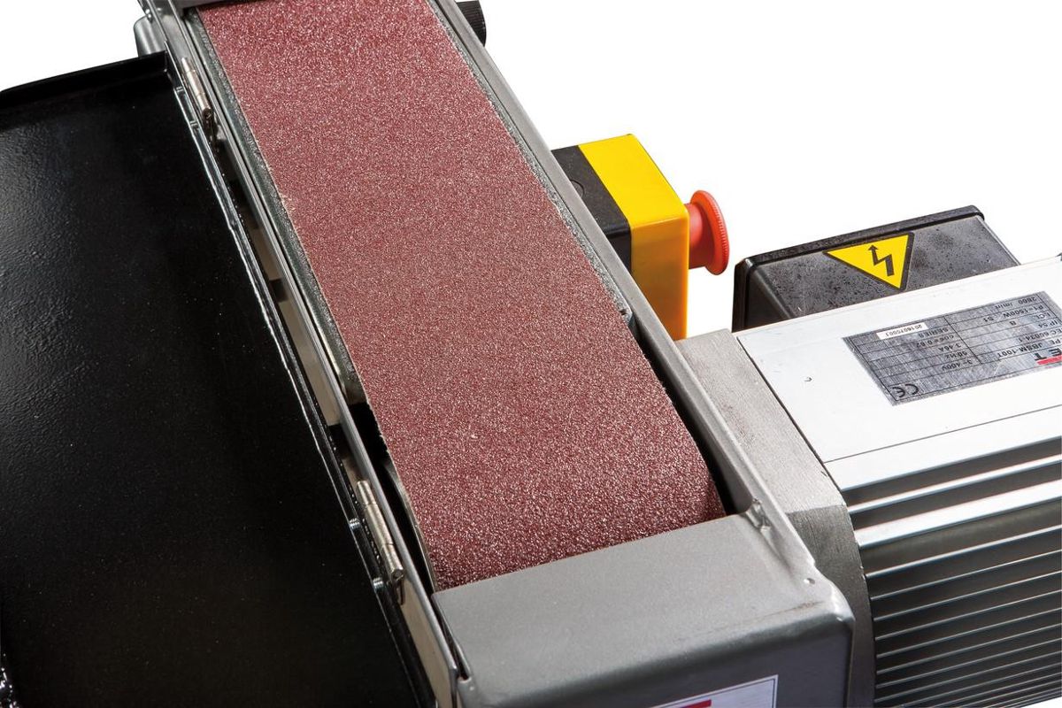 Это «средний класс» по возможной ширине шлифования в линейке плоскошлифовальных станков компании JET. У JBSM-100 она составляет 100 мм. Максимальная длинна обработки - 500 мм при длине ленты 1220 мм. На станок установлен мощный двигатель на 1,5 кВт с подключением к электросети 400 В обеспечивающий постоянную скорость движения ленты в 19 м/мин. Обрезиненные направляющие роликов исключают ее проскальзывание при нагрузке.