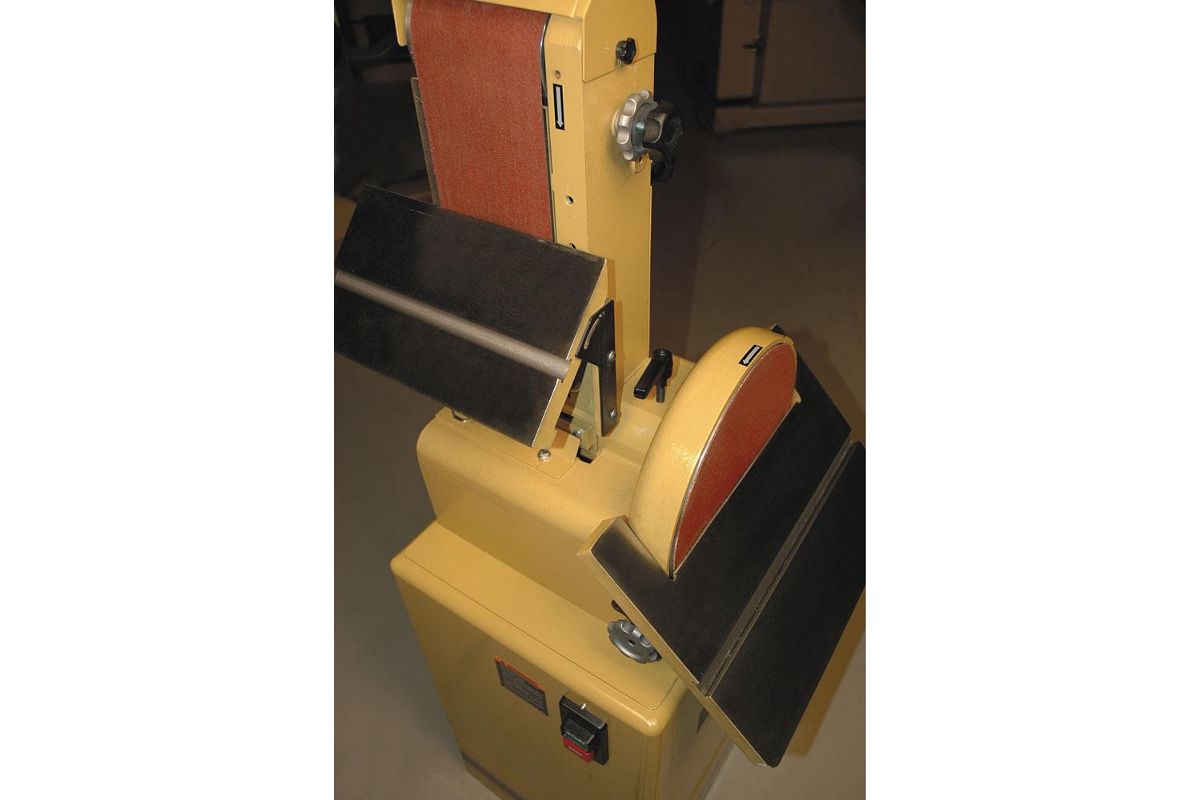 Деревообрабатывающие станки Powermatic, наиболее популярные в США, характеризуются как лучшие в классе, благодаря чему признаны «золотым стандартом». Модель 31А полностью соответствует марке: это мощный станок, сделанный прочно и основательно. Компоновка – напольная, в тумбе-подставке размещен мощный двигатель и 100-миллиметровый патрубок пылеотсоса. Верхняя часть корпуса станка чугунная, из этого же материала сделаны и оба рабочих стола. Каждый из них регулируется по углу наклона, причем стол тарельчатого узла поворачивается не только на 45° вниз, но и на 15° вверх, а стол ленточного можно установить продольно. Для точных работ предназначен угловой упор с направляющей вдоль Т-образного паза, который предусмотрен у обоих столов. Ленточный узел можно установить вертикально, горизонтально или в любом промежуточном положении. Запас мощности и массивная конструкция с большой жёсткостью обеспечивают точность и отсутствие вибраций, даже при выполнении тяжёлых работ.