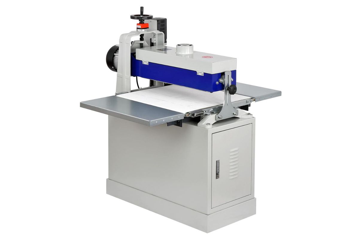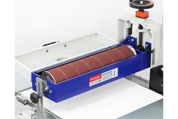 Шлифовальный барабан имеет консольное расположение. При необходимости обработки более широких заготовок можно снять левую стойку и в два прохода обрабатывать детали шириной до 1110 мм.
