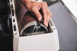 Шлифовальную абразивную ленту наматывают на барабан, а ее концы надежно фиксируют защелками.