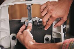 Регулировку параллельности основания (отсутствие ''клина'') осуществляют без вспомогательных инструментов или приспособлений.