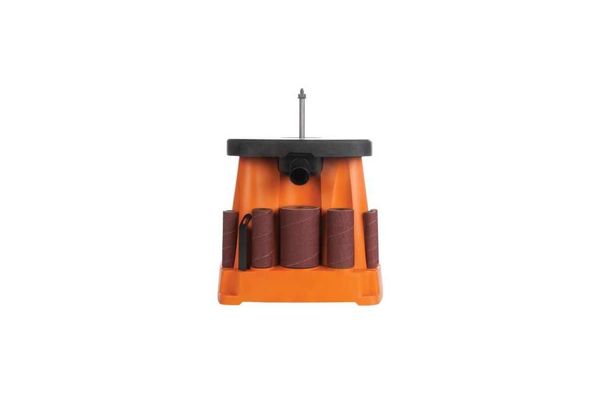 Ее устанавливают на сменный шпиндель, представляющий из себя резиновую втулку. Оснастку выбирают в соответствии с необходимой зернистостью и минимальным радиусом закругления, обрабатываемой детали. Доступные диаметры гильз 13-76 мм, в штатный комплект поставки входит их полный набор с зернистостью 80G, в качестве принадлежности доступны и другие марки абразива: от 60 до 150G – то есть для всех возможных случаев.